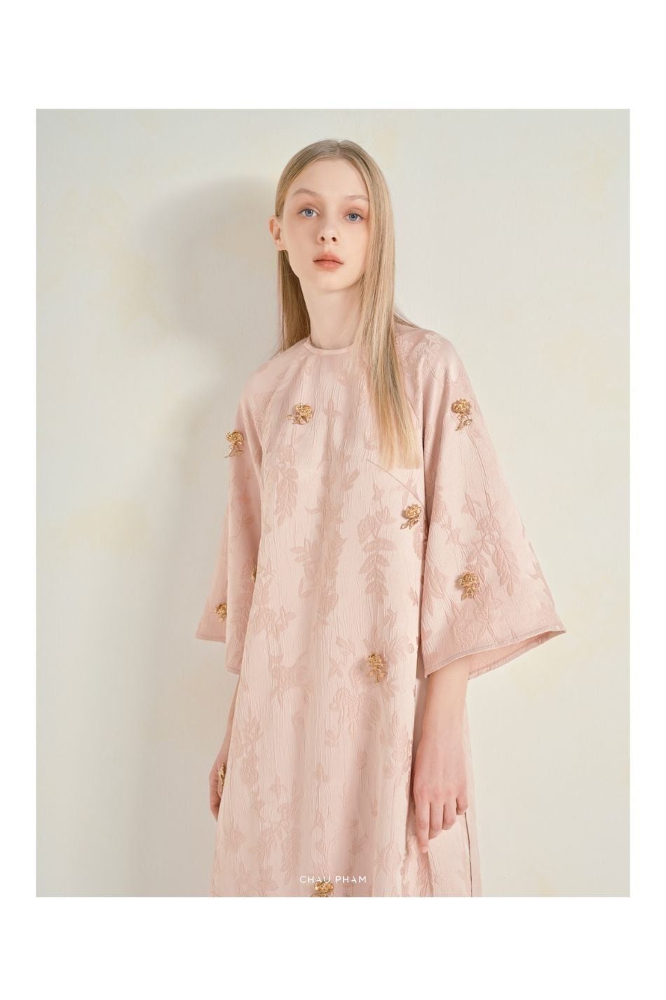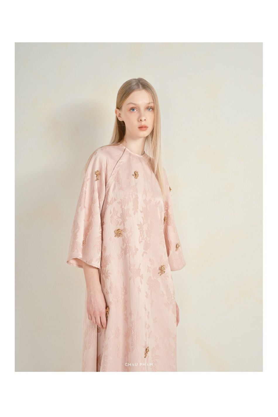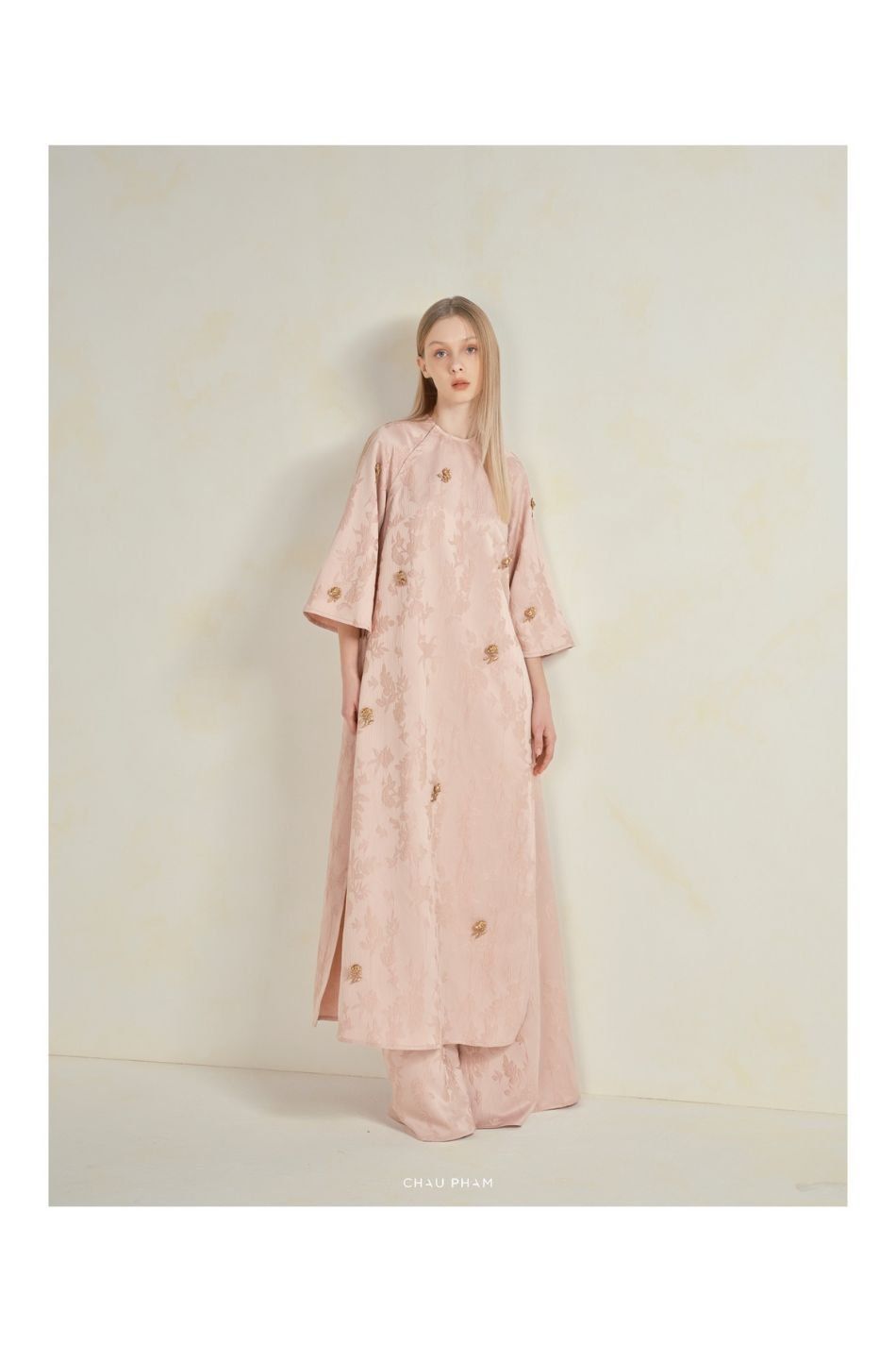 W - Áo dài Chau Pham hồng tay lỡ CHAUPHAM
