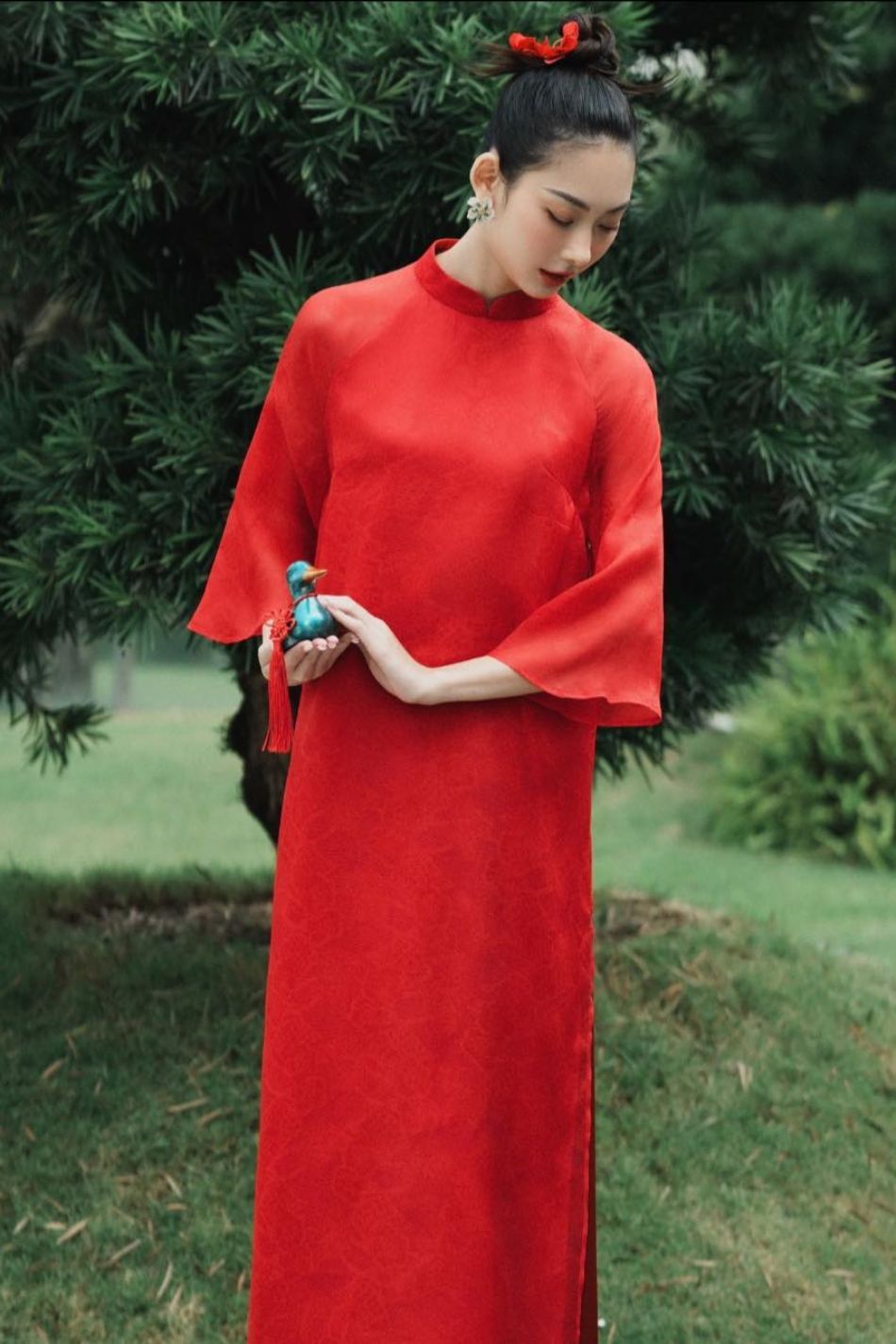 Áo dài Chu Tường đỏ (quần đỏ đậm) XÉO XỌ