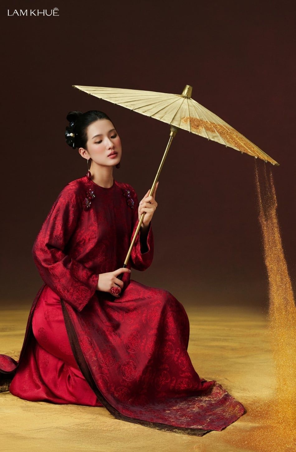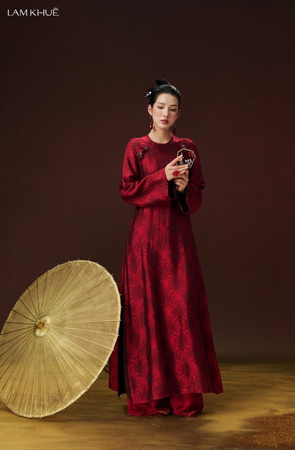 W - Áo dài đỏ đậm quần đỏ LAM KHUE