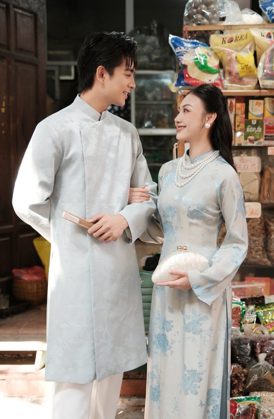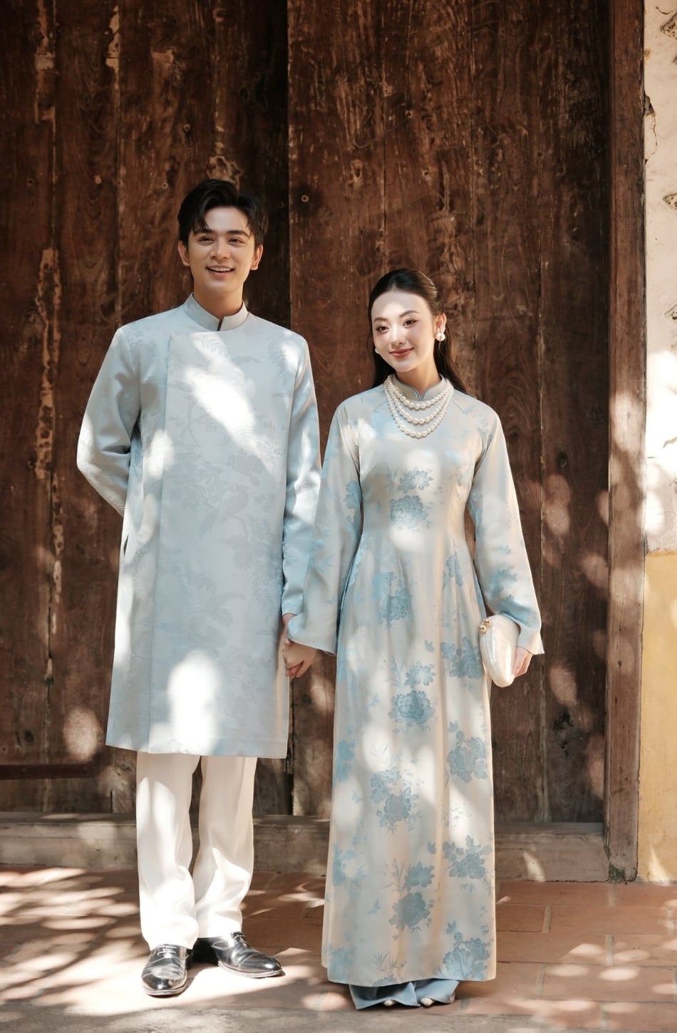 W - Áo dài DƯƠNG VŨ nam hoạ tiết hồng phượng xanh MAISON HAVU