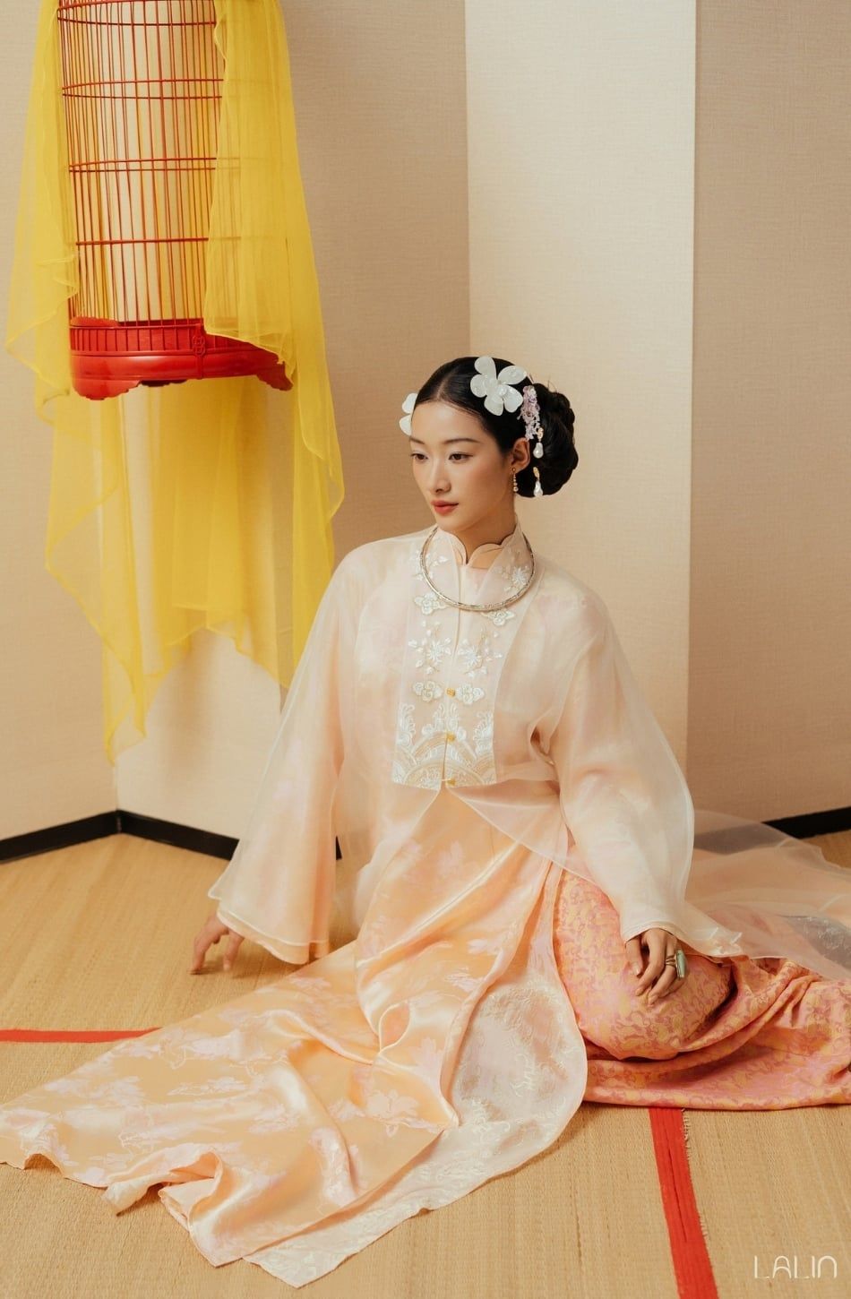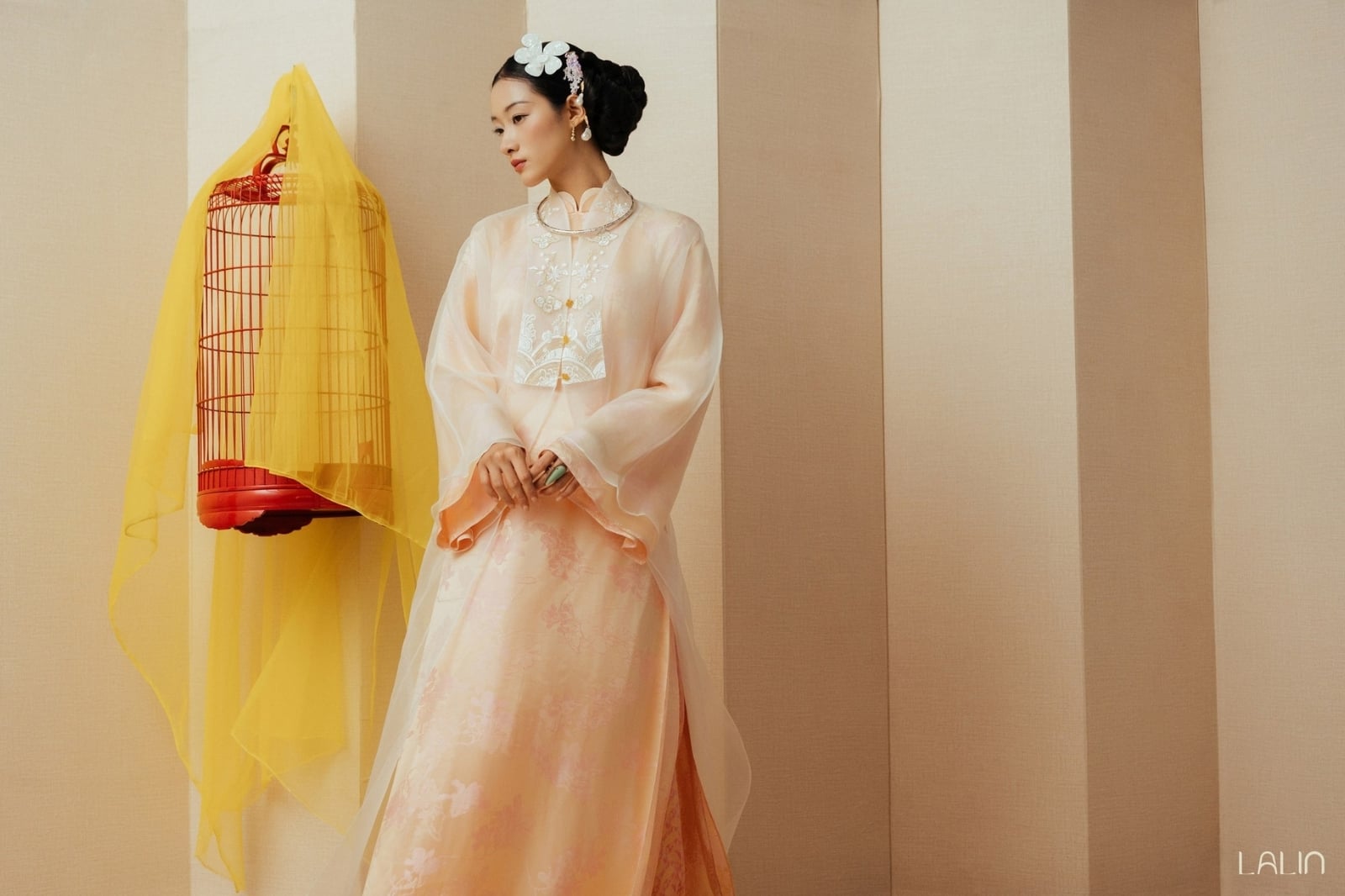 W - Áo dài GIAO MIÊN quần hồng và áo khoác VỸ GIAO LALIN