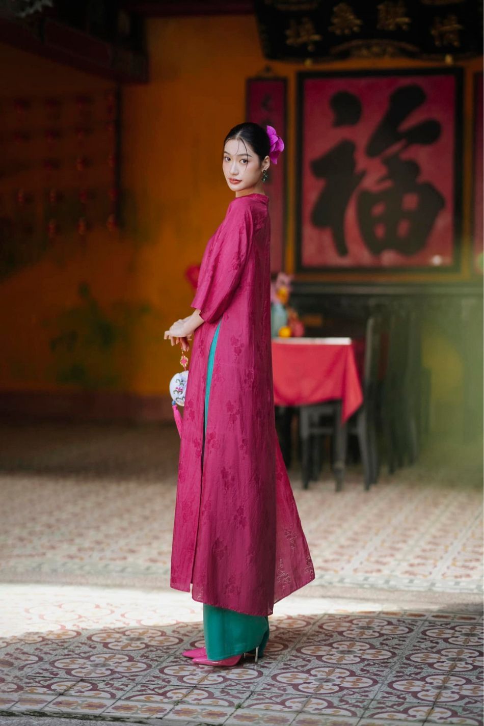 Áo dài Hồng Điệp (quần xanh lá đậm) XÉO XỌ