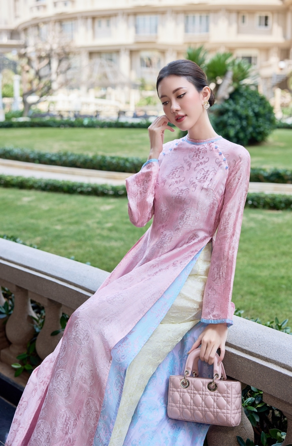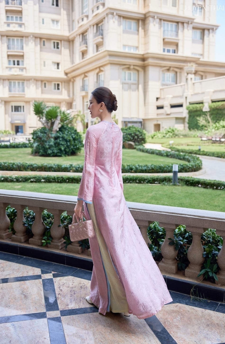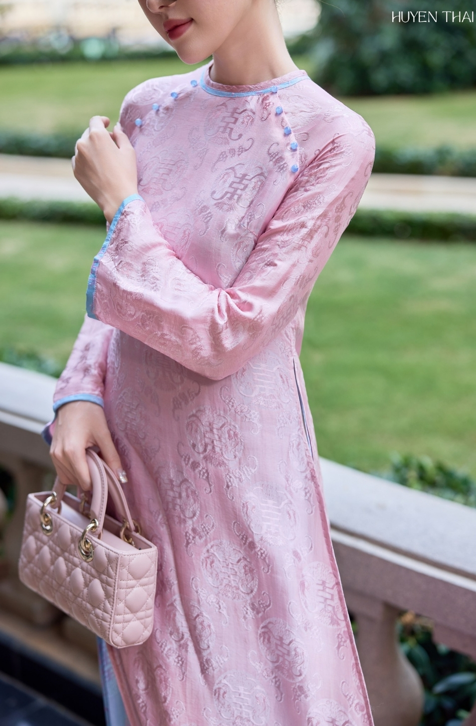 W - Áo dài hồng tà xanh dương HUYEN THAI