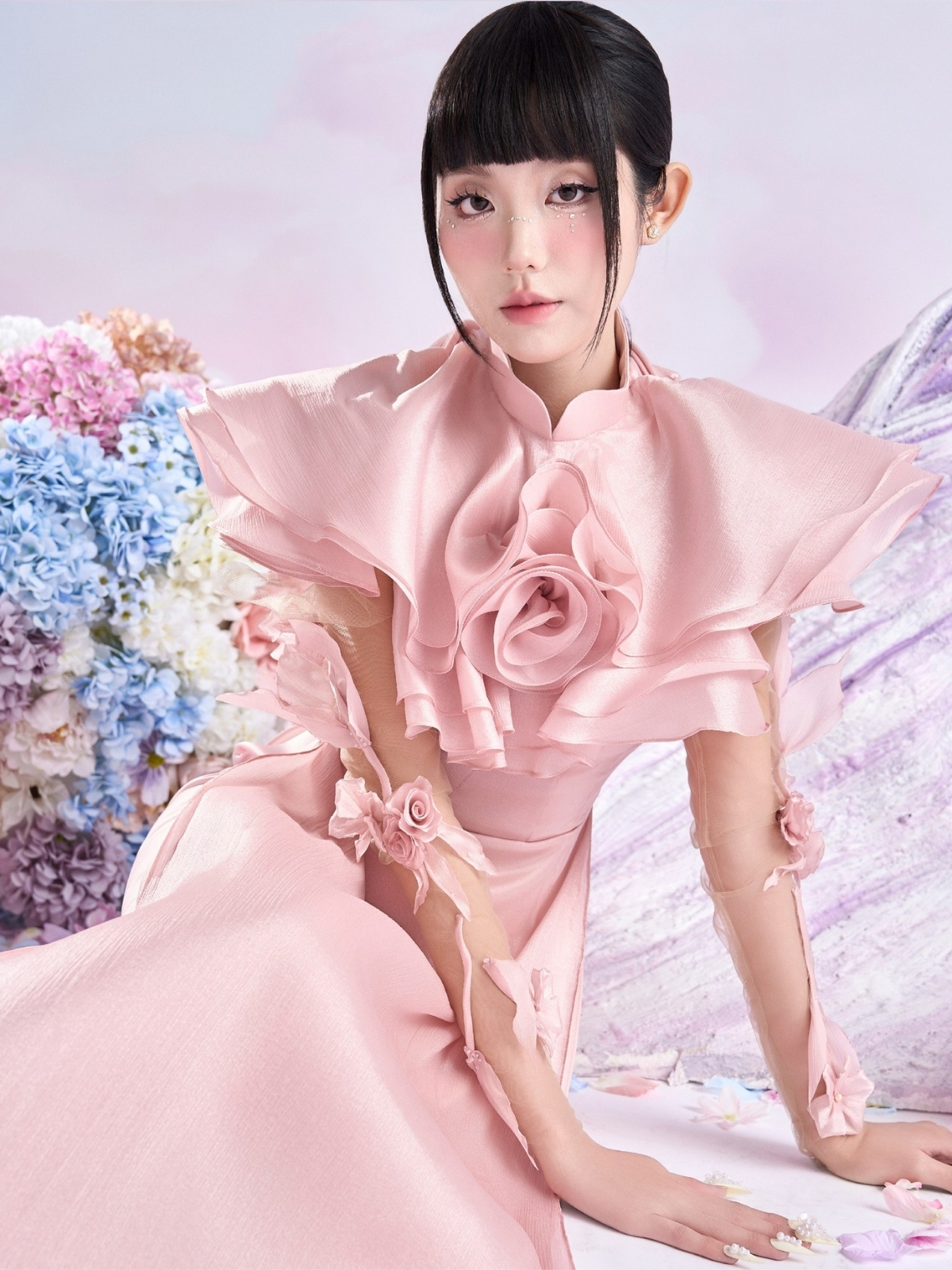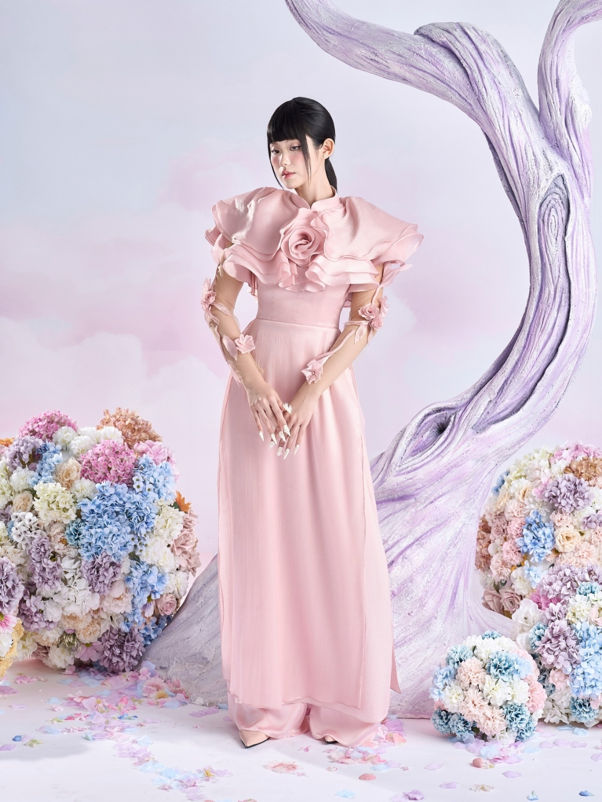 W - Áo dài hồng tay cánh tiên LAM KHUE