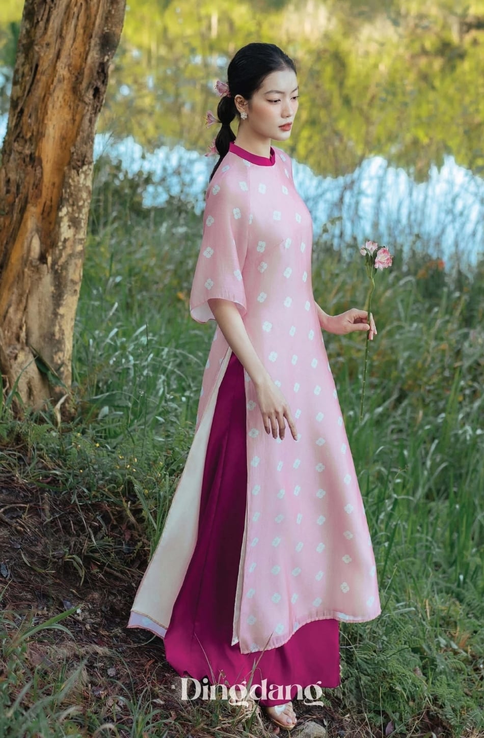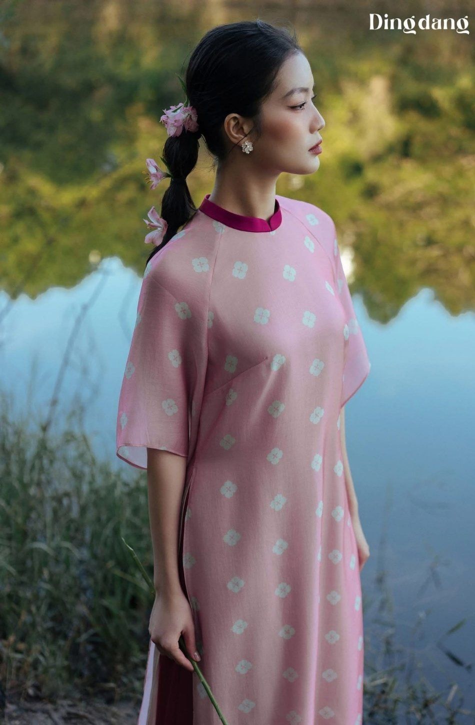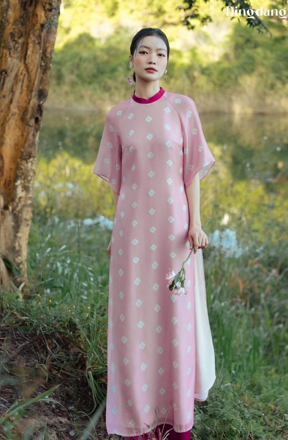 Áo dài hồng tay lửng kèm quần hồng đậm DINGDANG