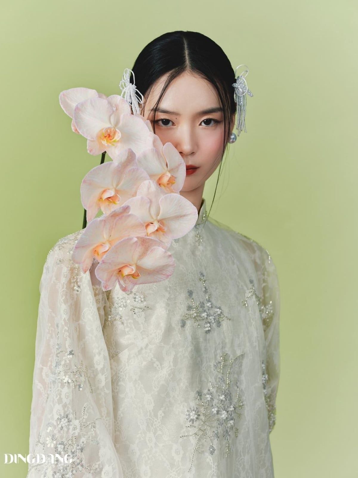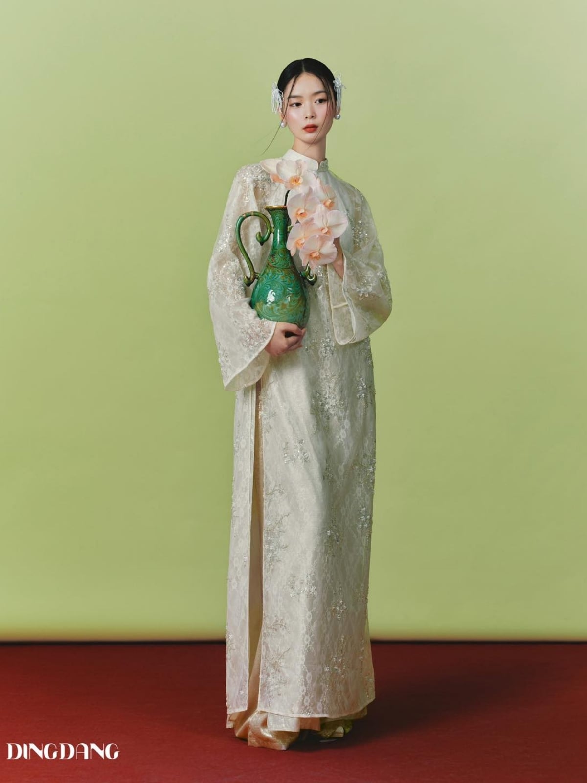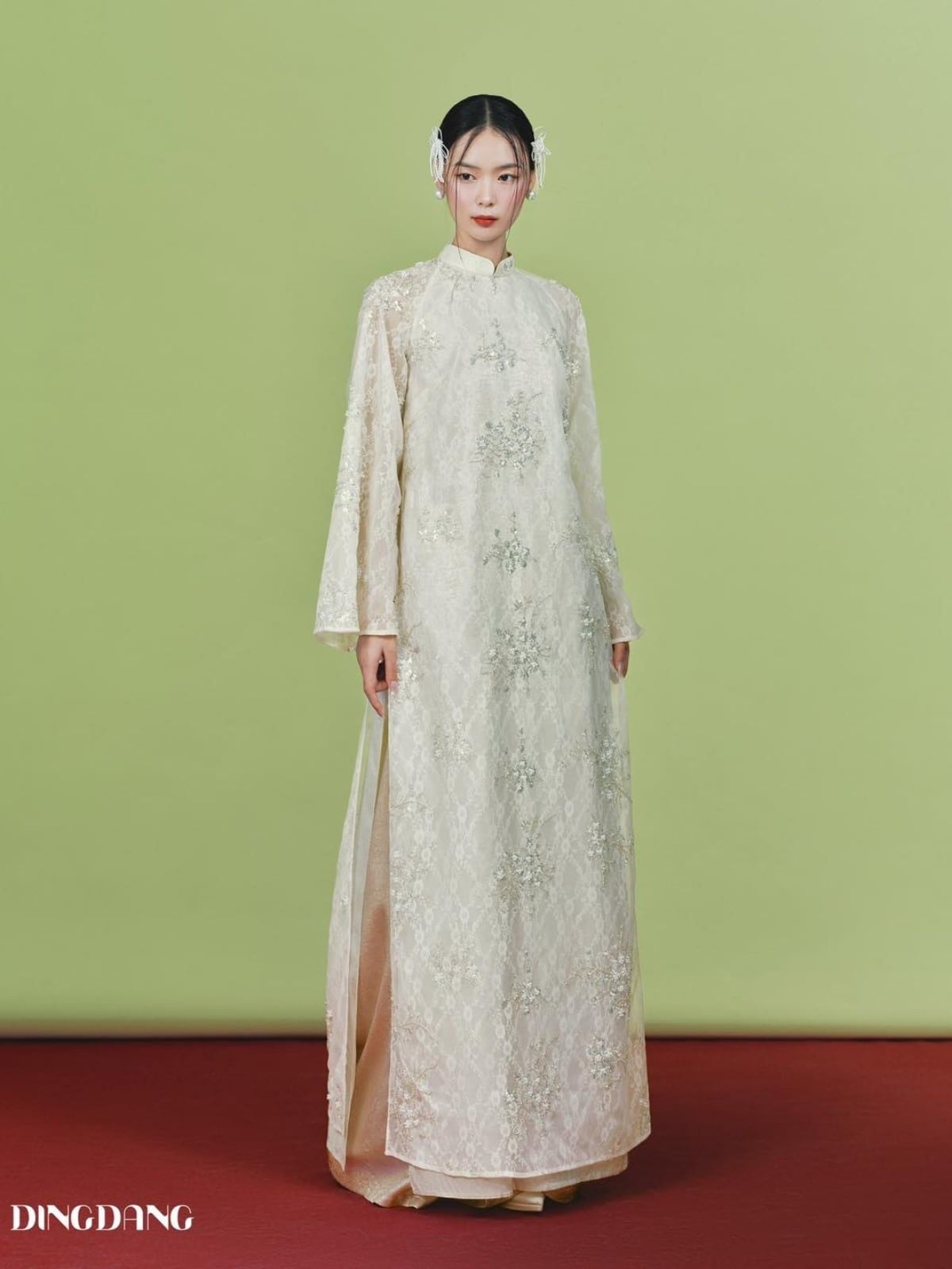 W - Áo dài kem quần kem hồng DINGDANG