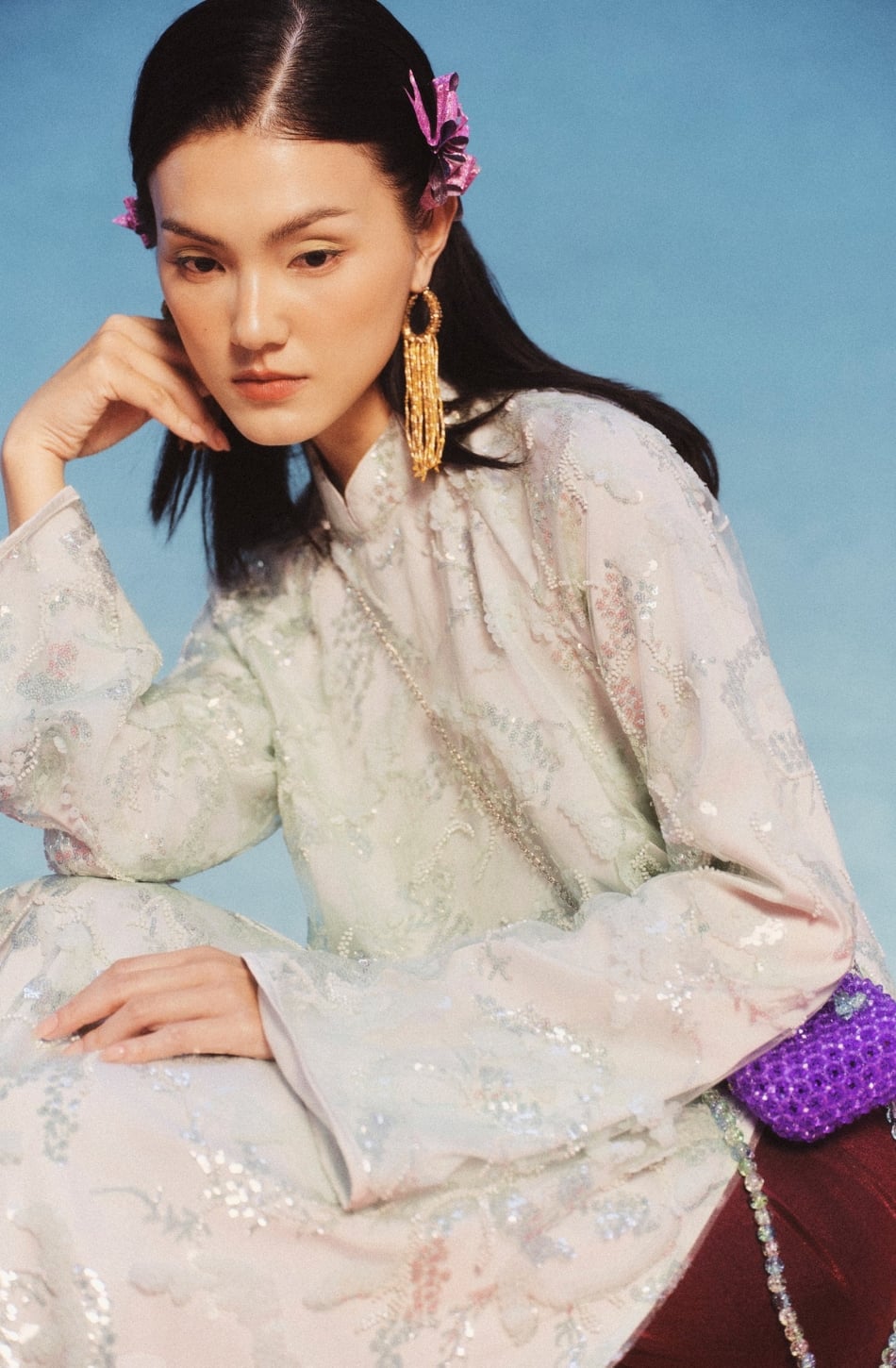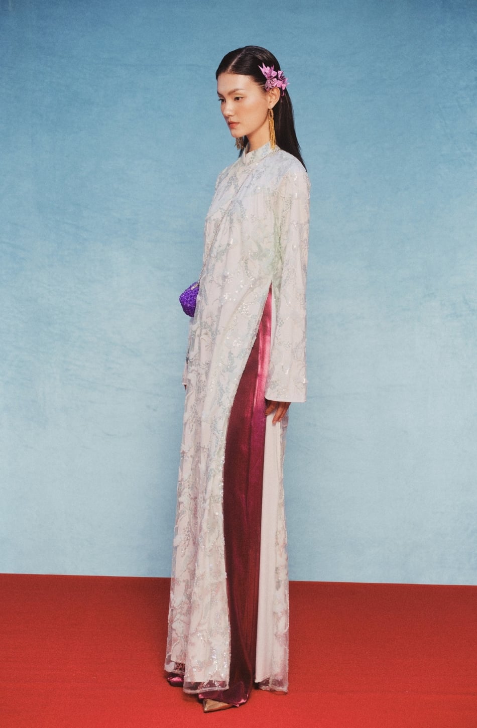 W - Áo dài LƯU NGỌC áo M quần trắng L XÉO XỌ