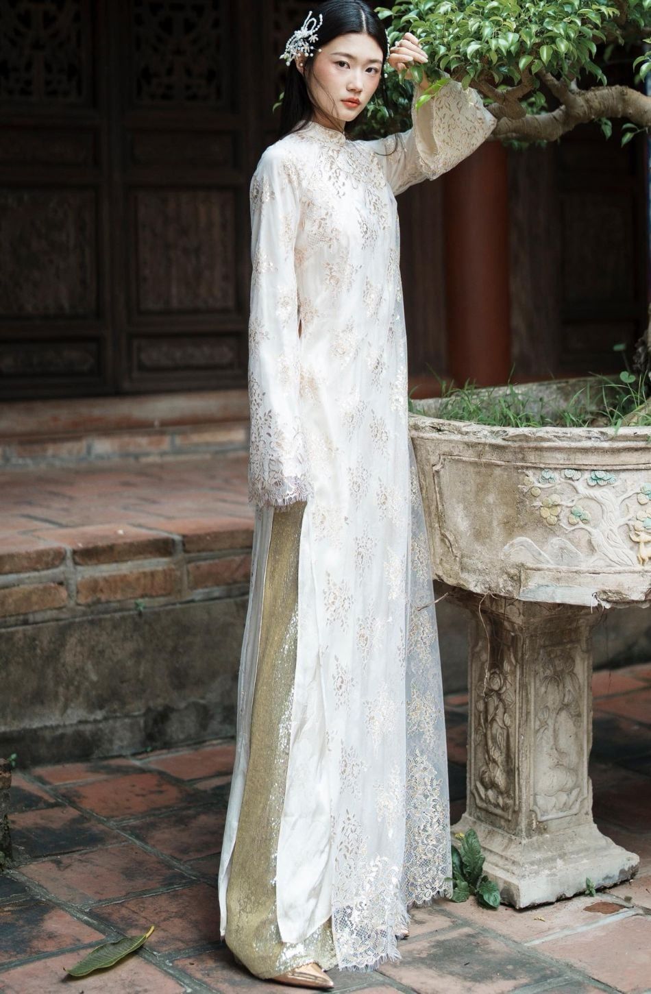 W - Áo dài NGÂN HƯƠNG quần KIM SA XÉO XỌ
