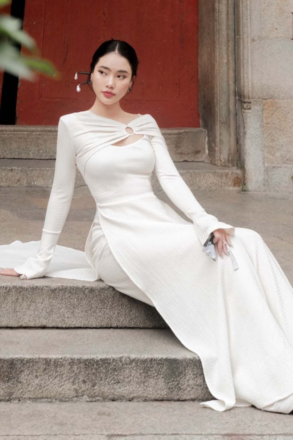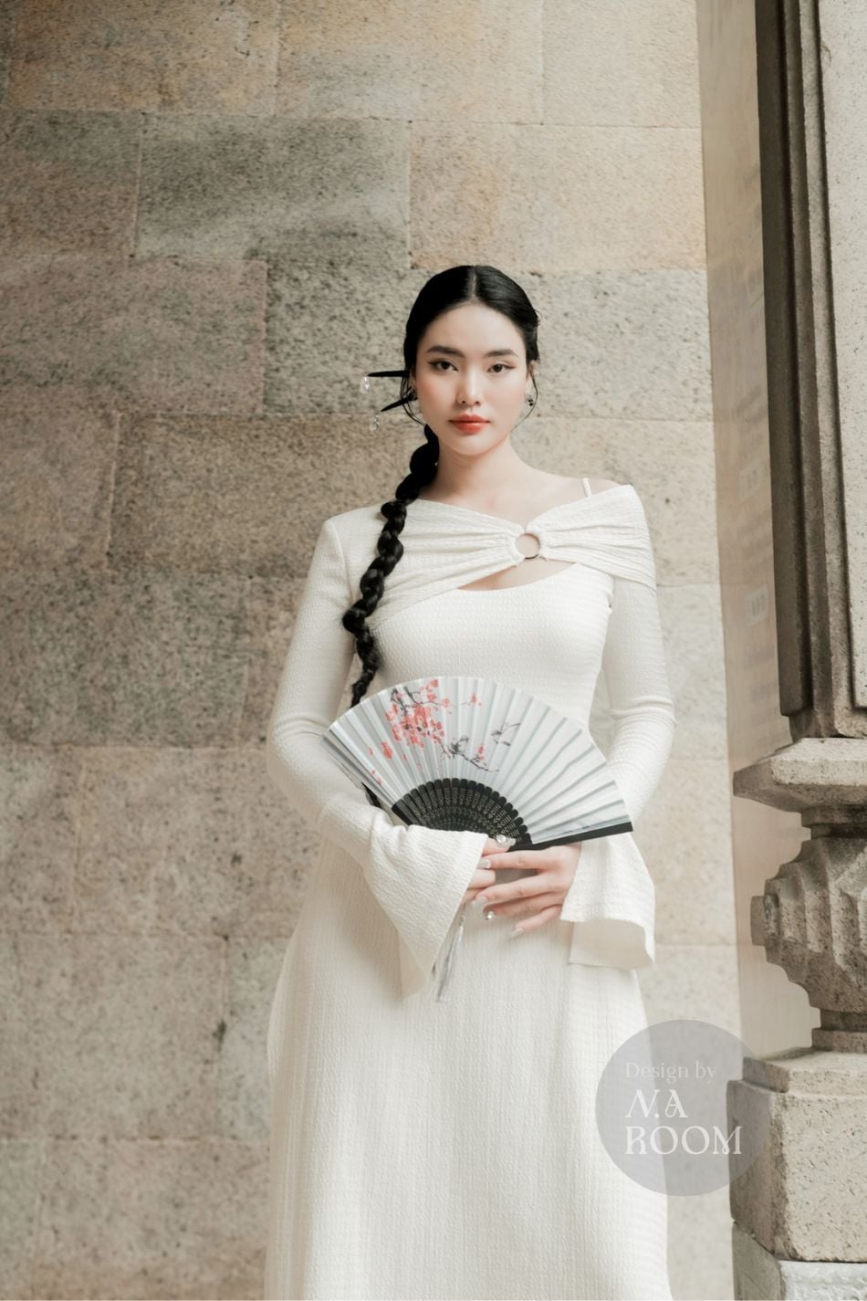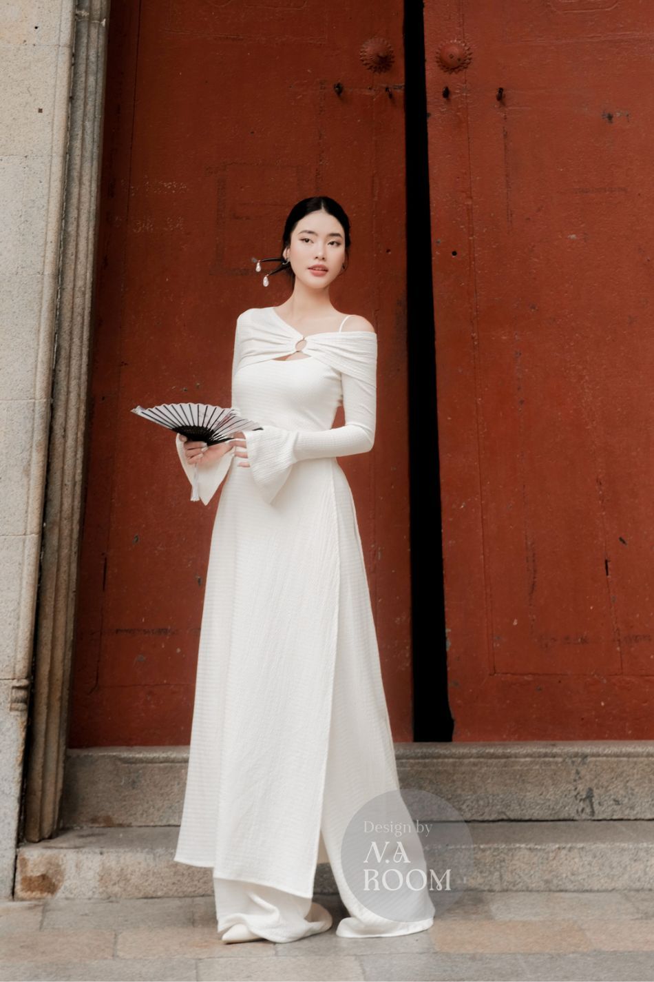 Áo dài trắng chéo vai tay dài loe NA ROOM