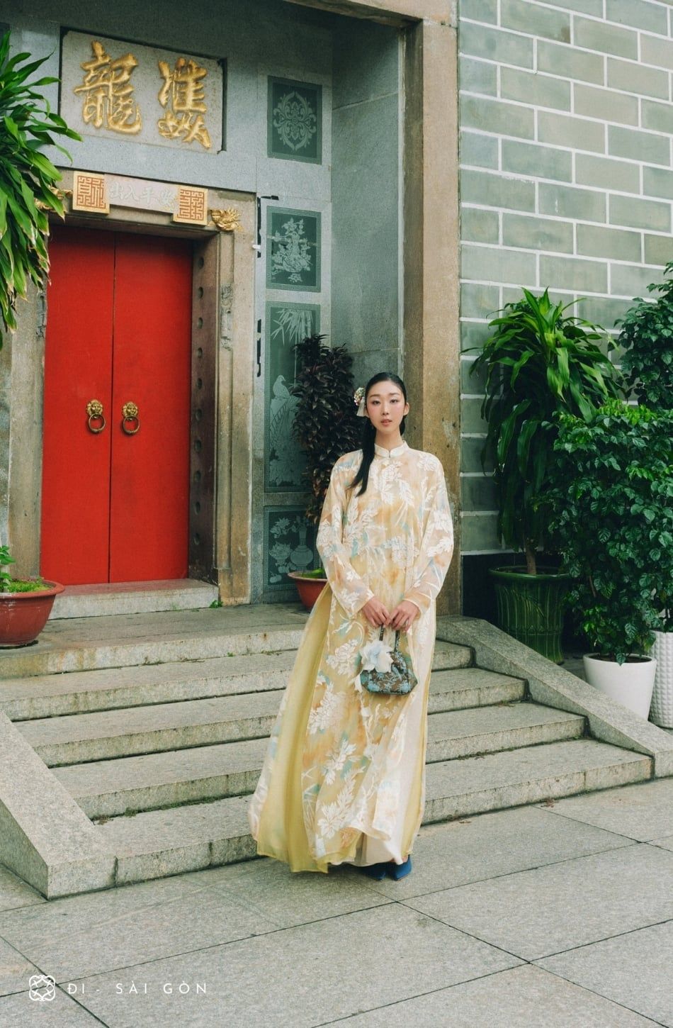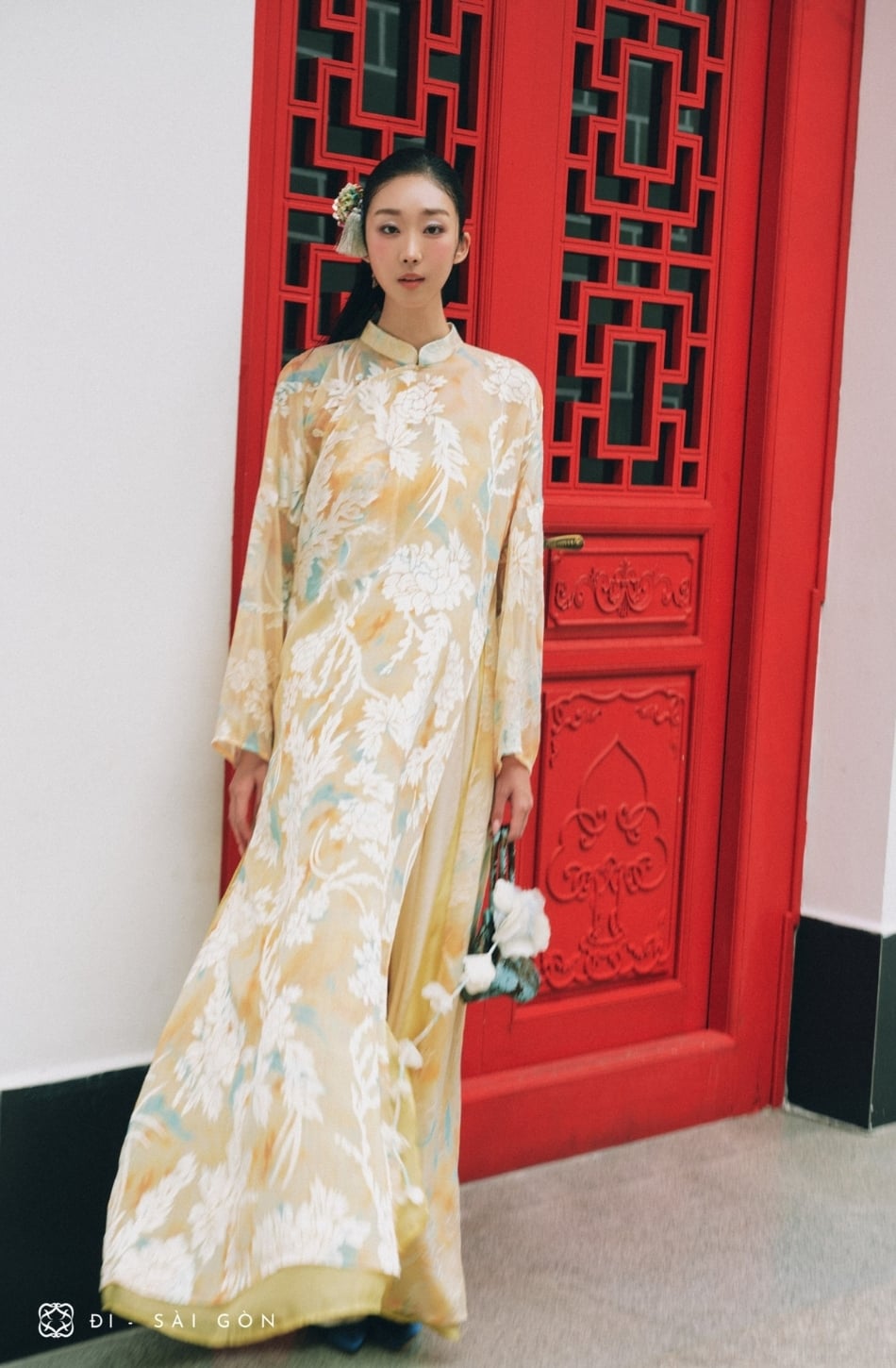W - Áo dài vàng cốm quân kem DINGDANG