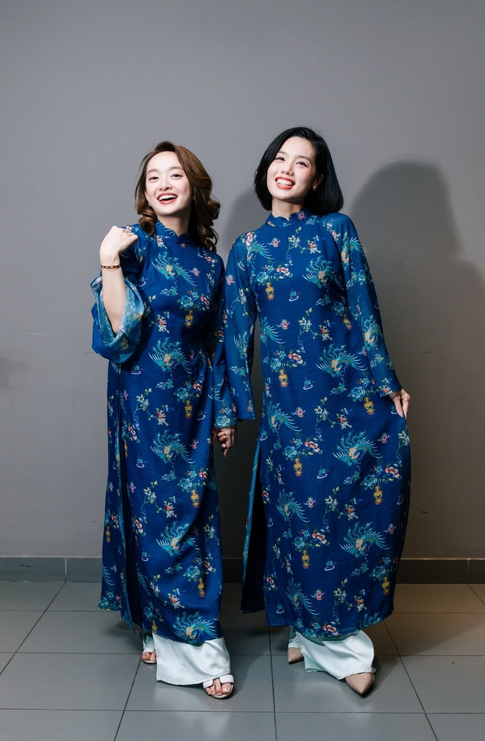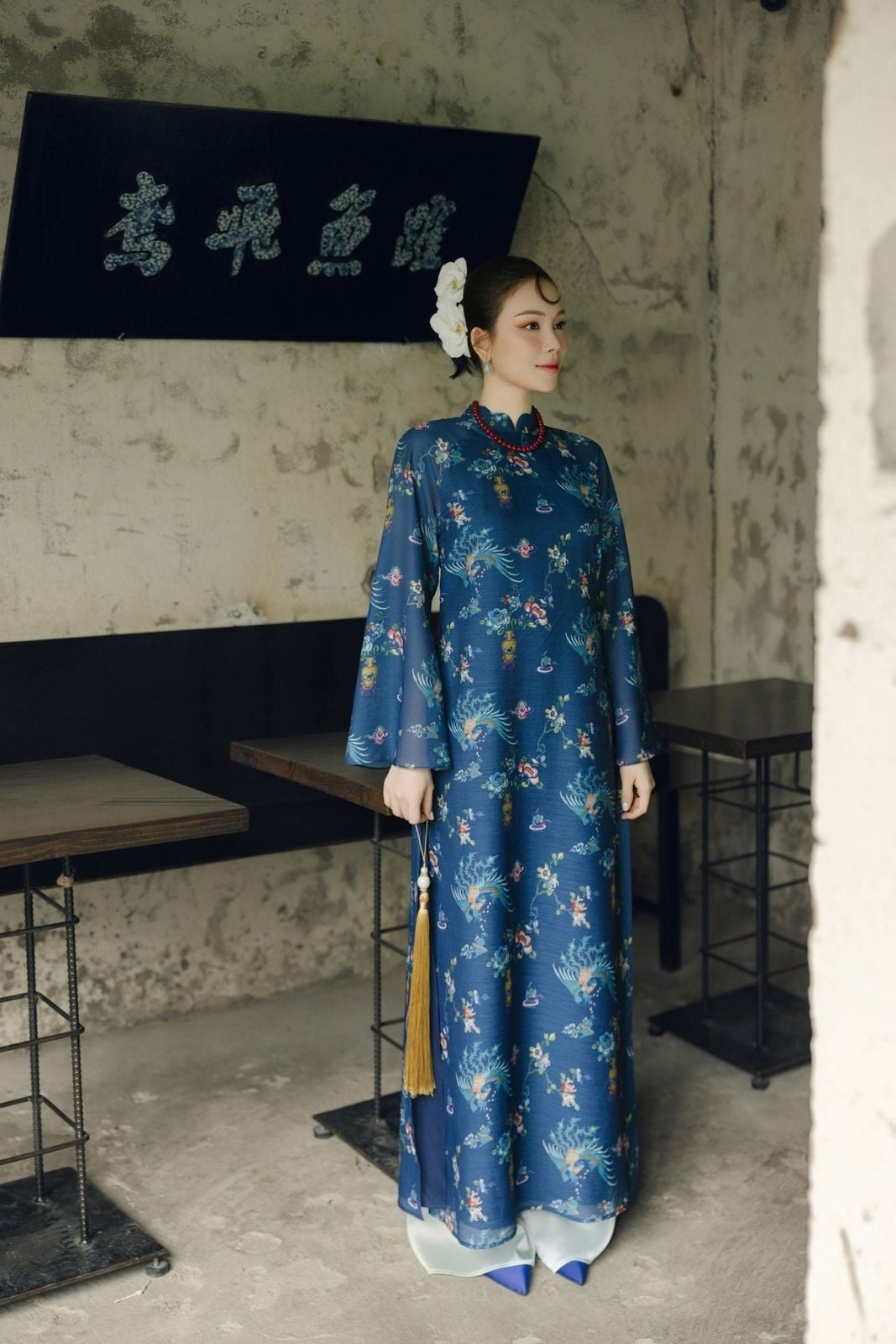 W - Áo dài xanh dương Lam Chi áo S quần M LALIN