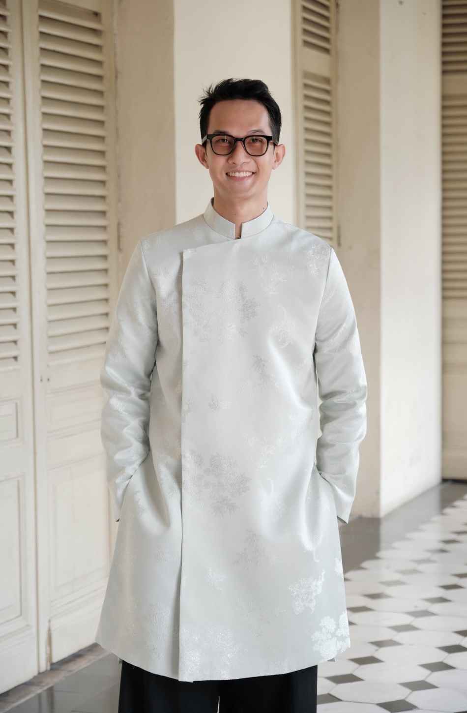 W - Áo dài xanh dương nam DƯƠNG VŨ MAISON HAVU