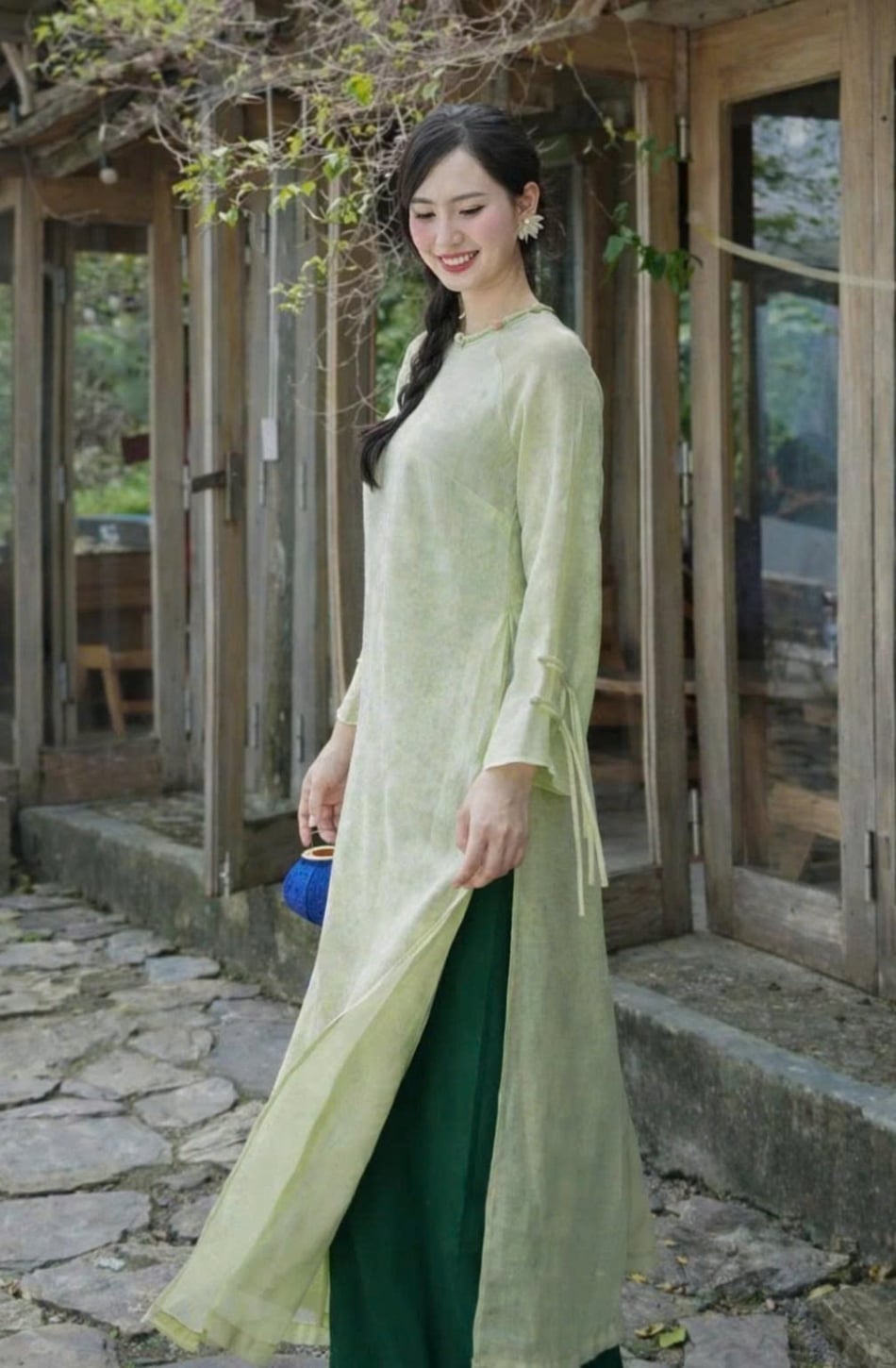W - Áo dài xanh lá quần xanh đậm KOALIFY