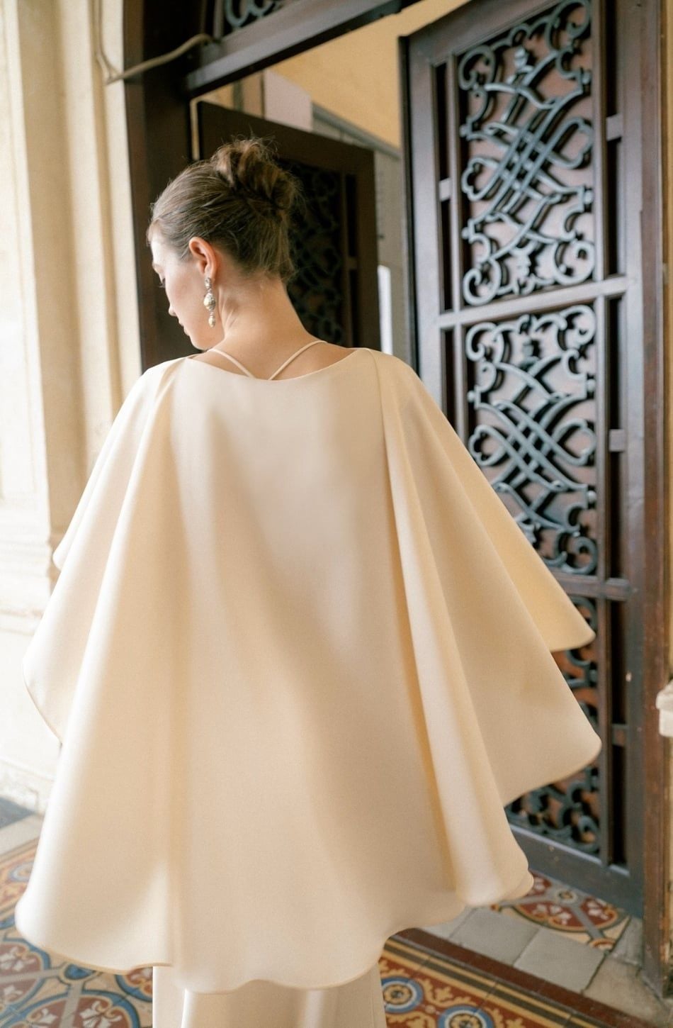 W - Đầm lụa kem dài kèm áo choàng KISSERINE