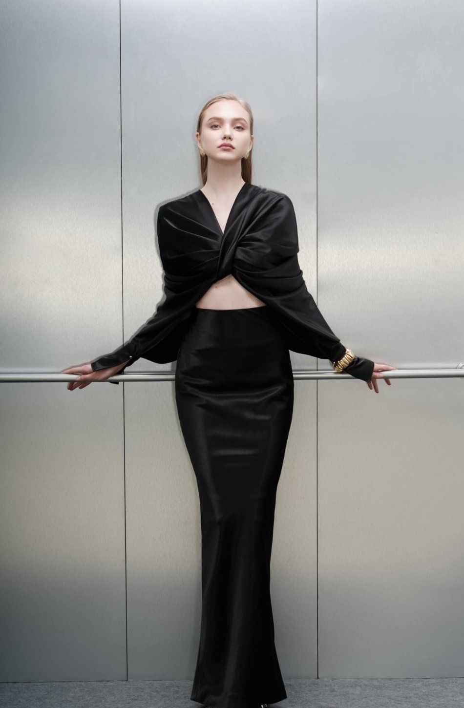 Set áo kiểu và chân váy dài đen DANG HOANG