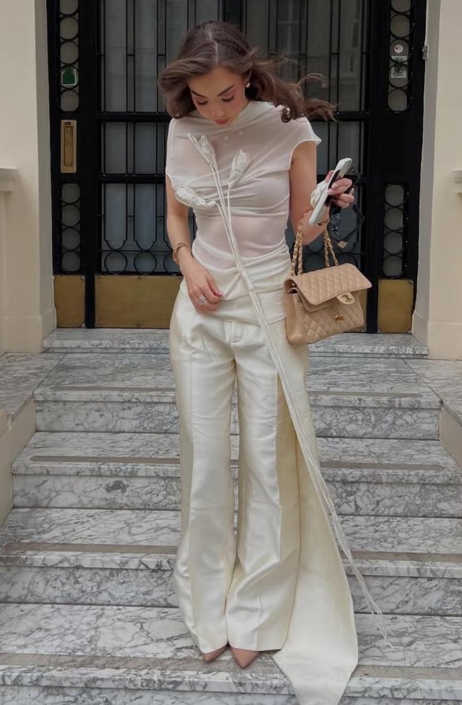 Set đồ kem áo tay ngắn đính hoa 3d DAS LA VIE