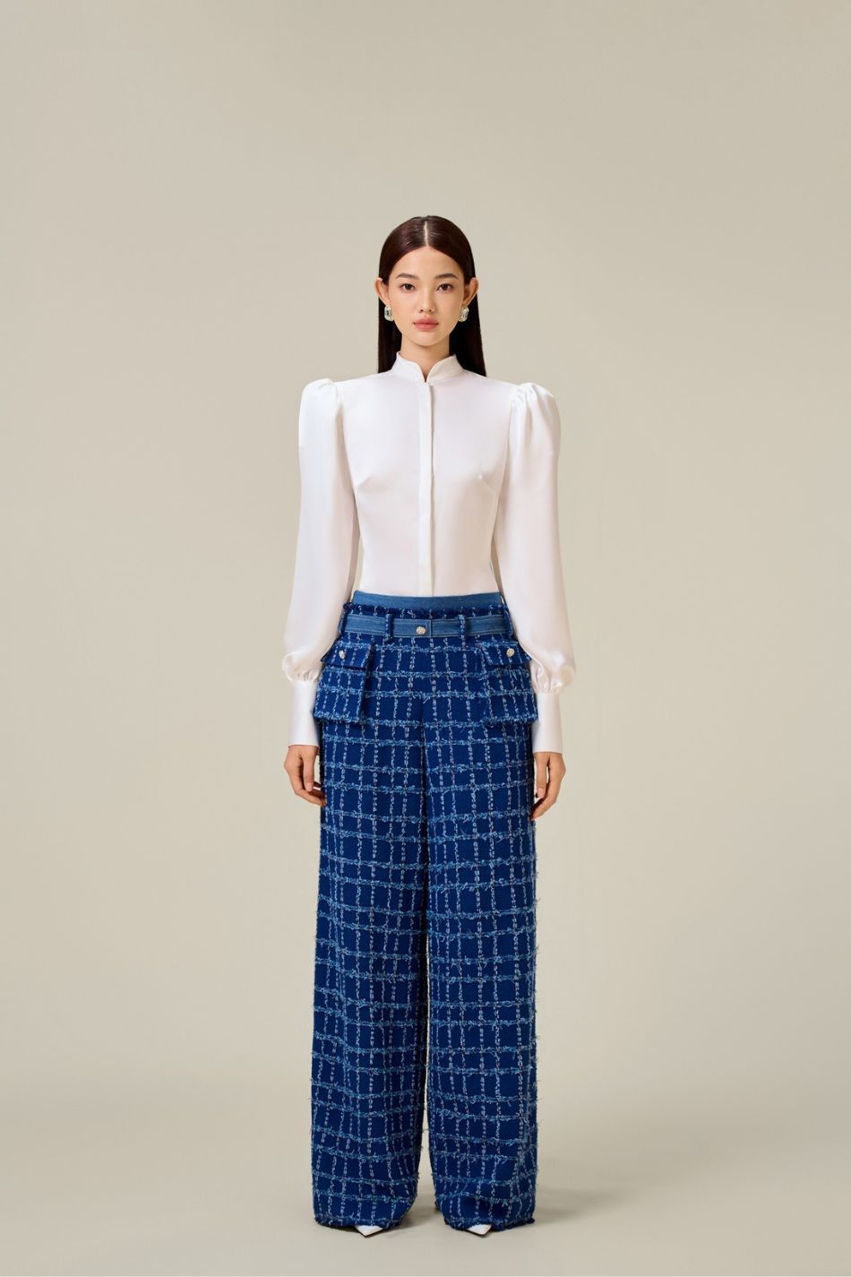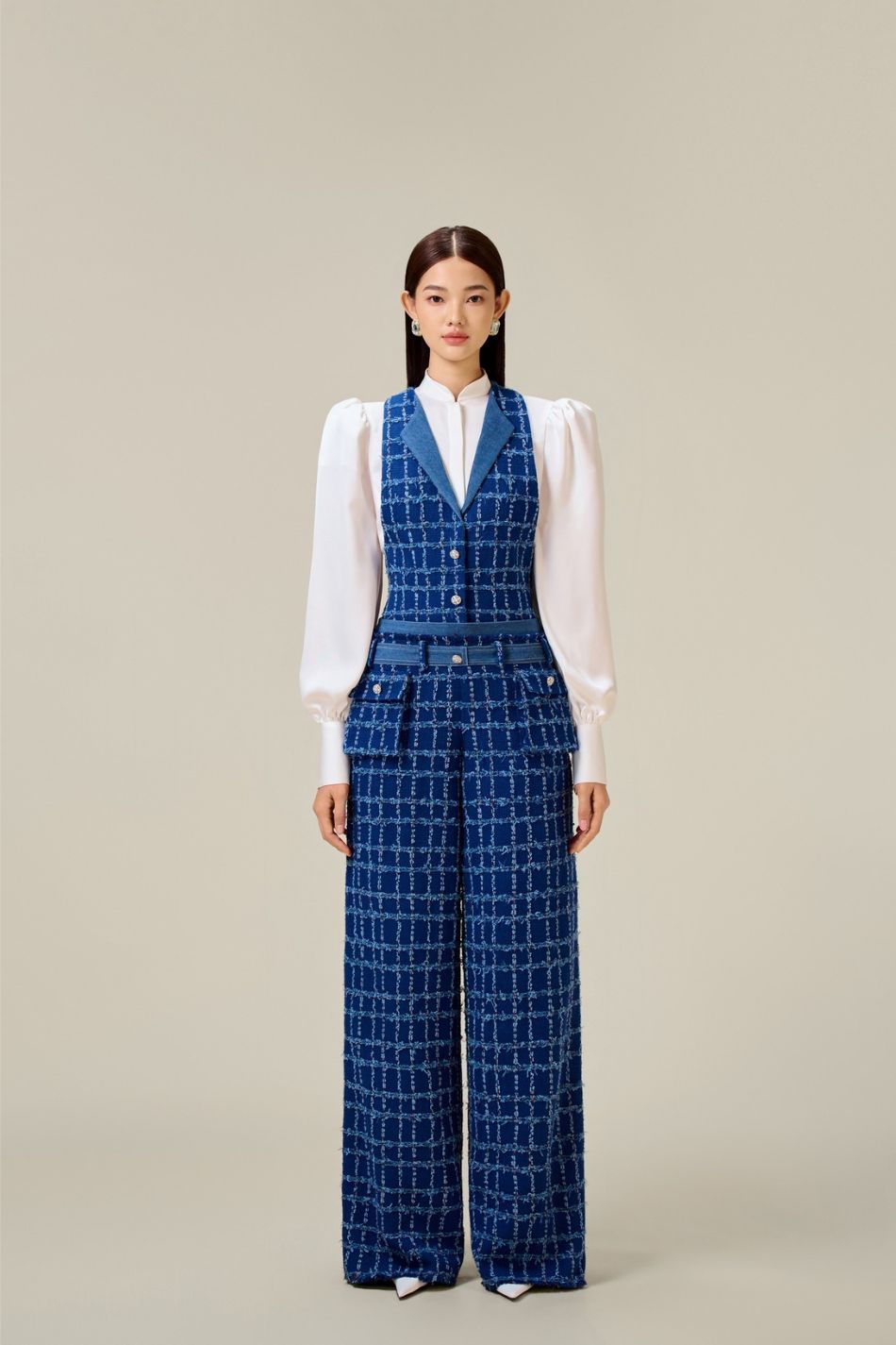 Set tweed xanh dương áo ghile quần dài LOBBSTER