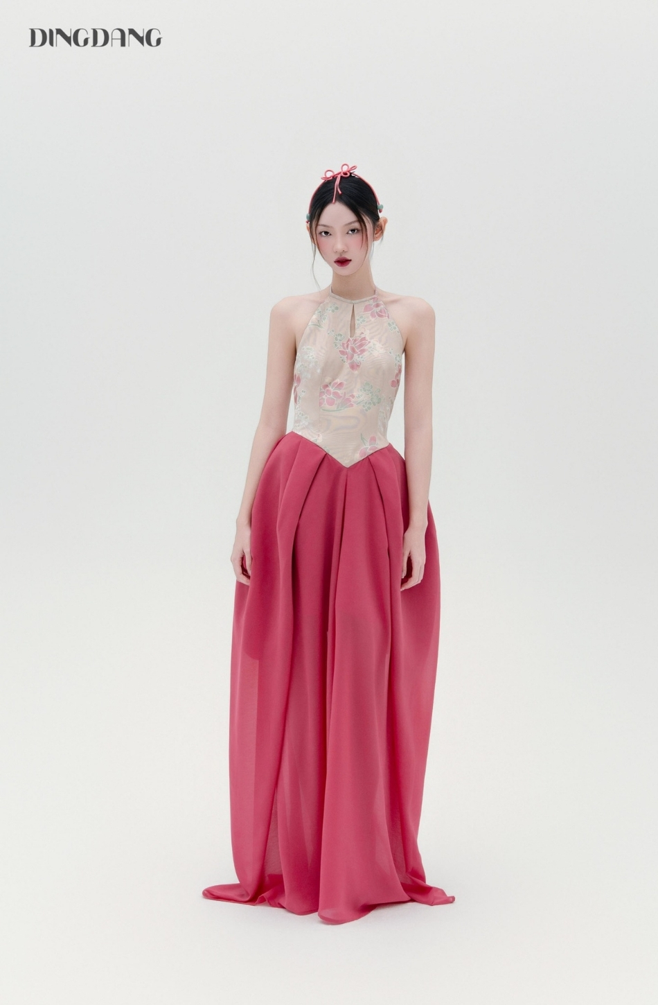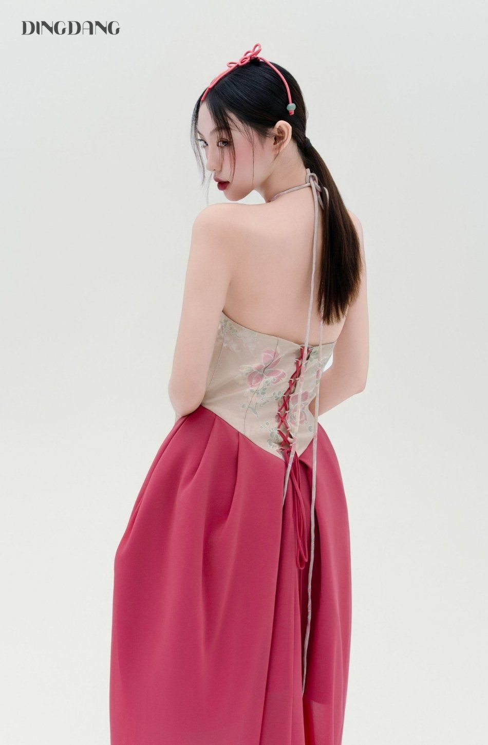 Set yếm hồng áo hoạ tiết hoa nổi DINGDANG