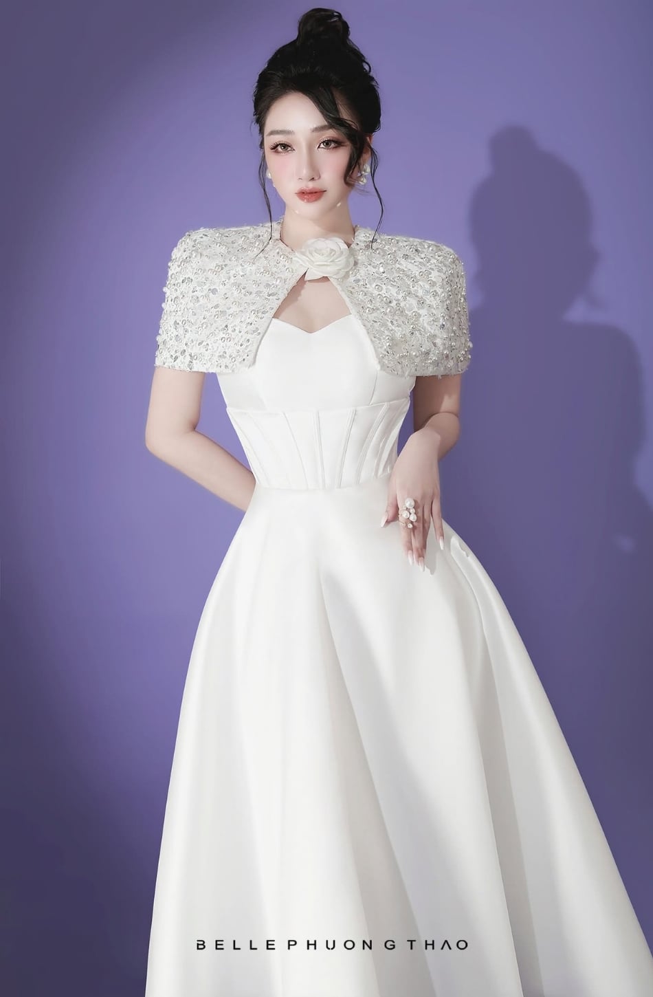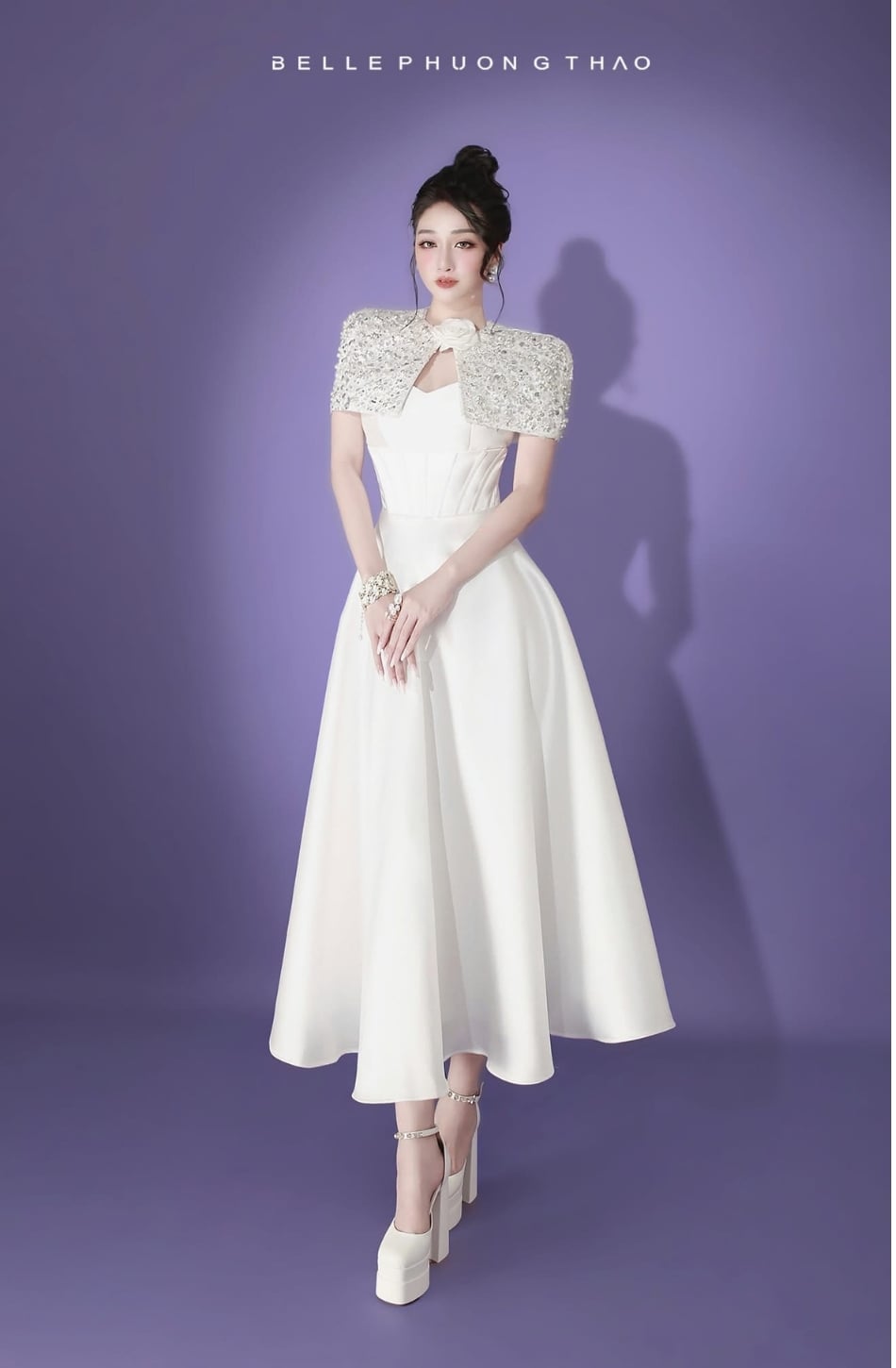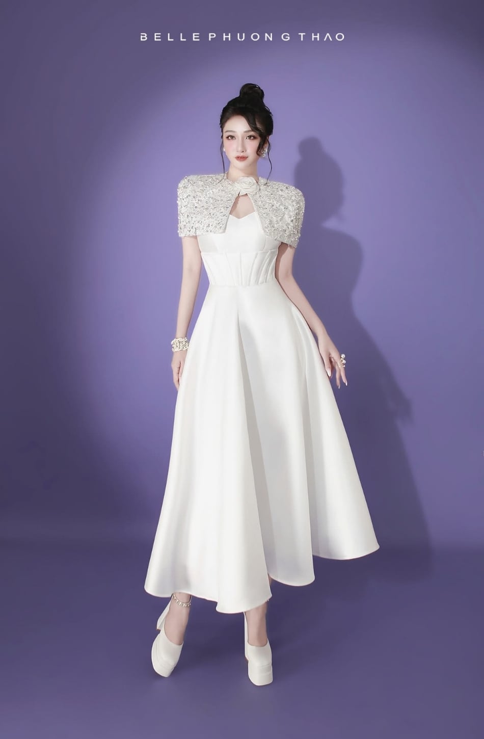 Váy Belle Phuong Thao trắng công chúa kèm cape BELLE PHUONG THAO