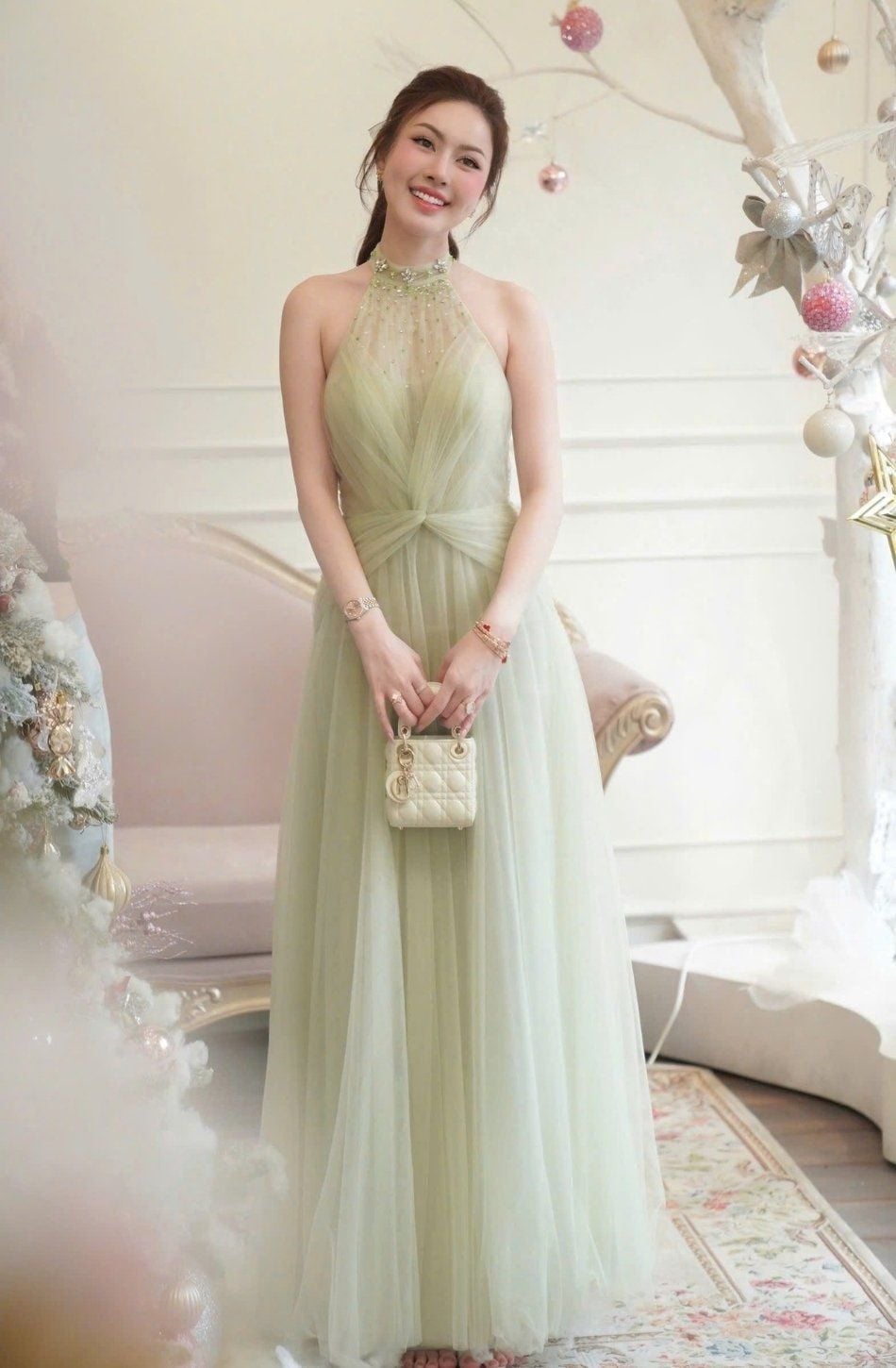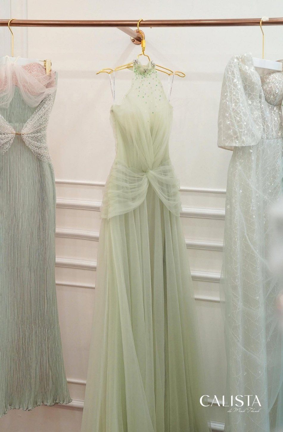 Váy dài cổ yếm đính đá sát nách CASLITADEMINHTHANH