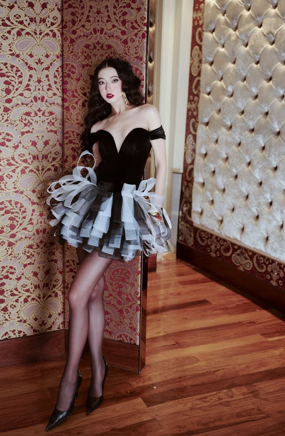 Váy đen CELESTYN phối lưới màu trắng MAEL FEMME