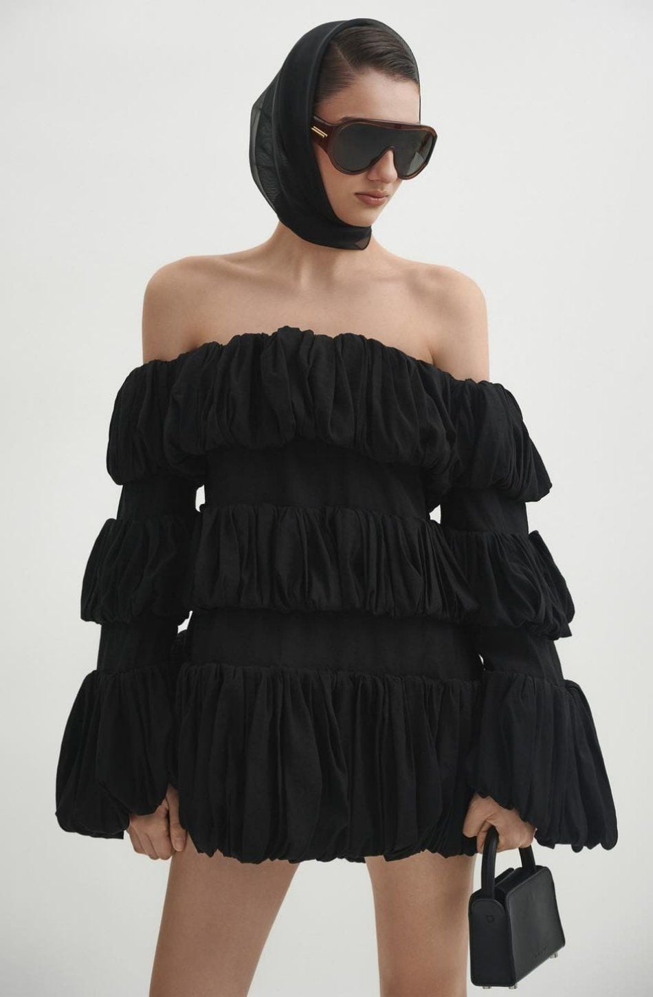 Váy đen ngắn bẹt vai DATT