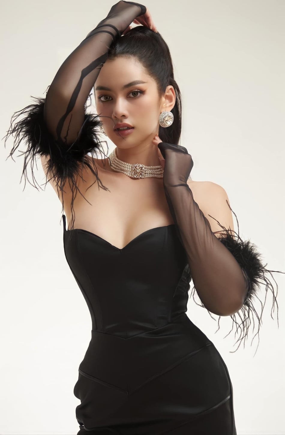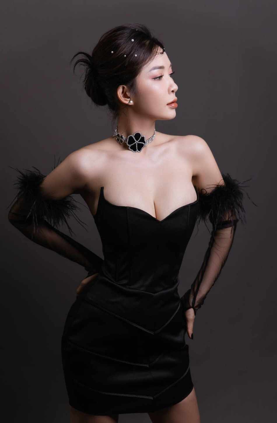 Váy đen ngắn cúp ngực kèm bao tay lông GLAMDOLL