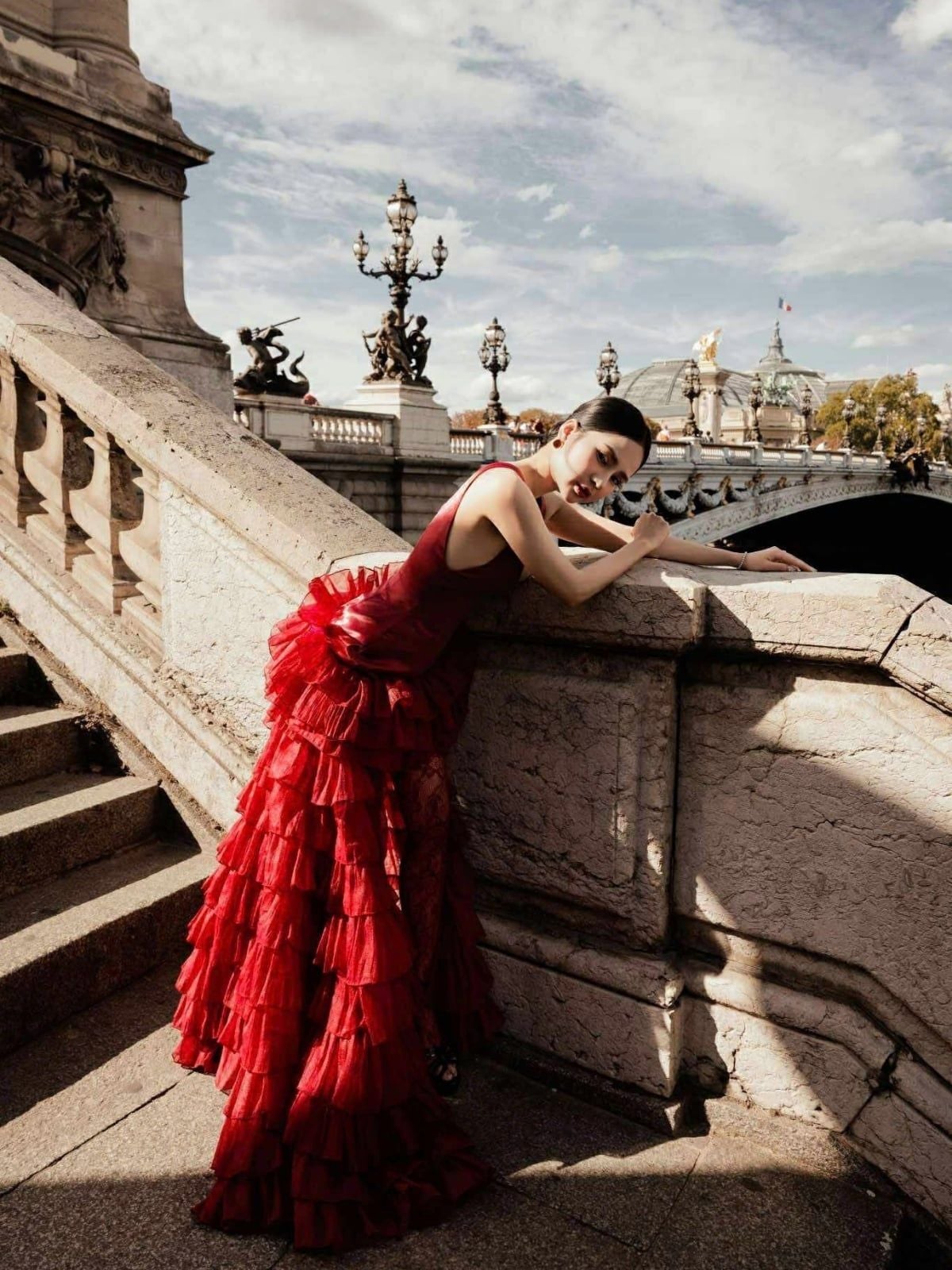 Váy đỏ 2 dây bản to tà xẻ 1 bên GLAMDOLL