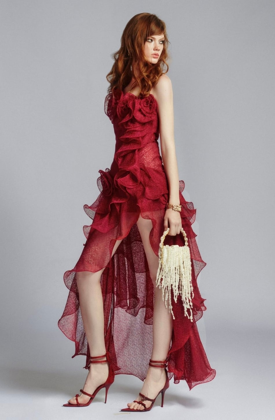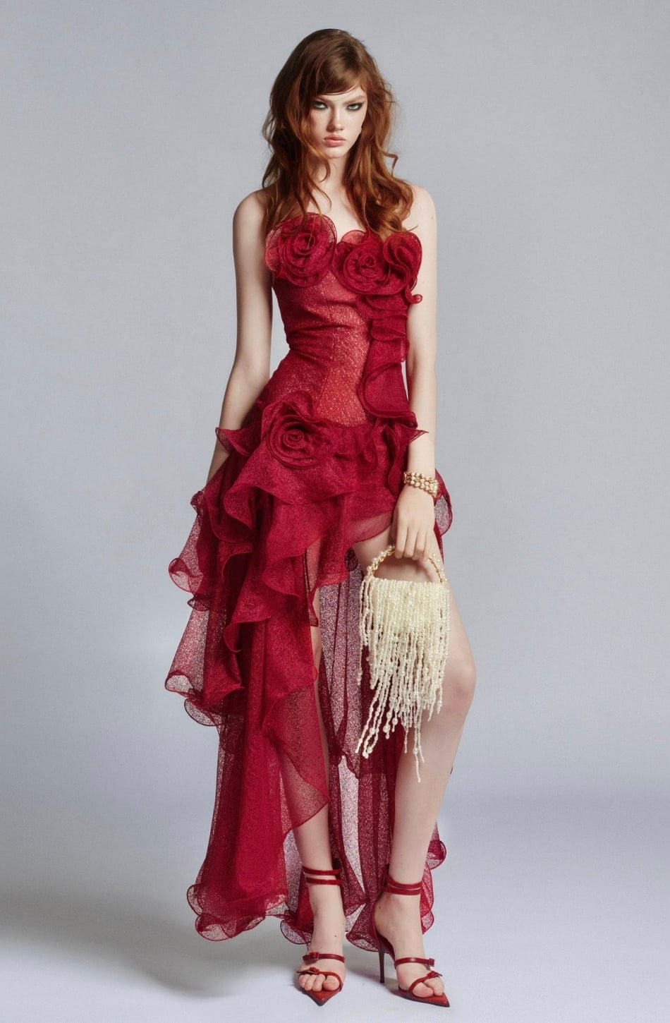 Váy đỏ dài xẻ đùi đính hoa hồng 3d MUST HAVE
