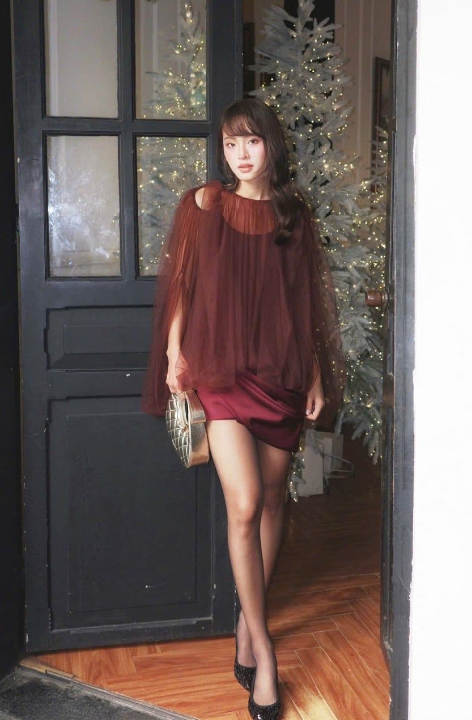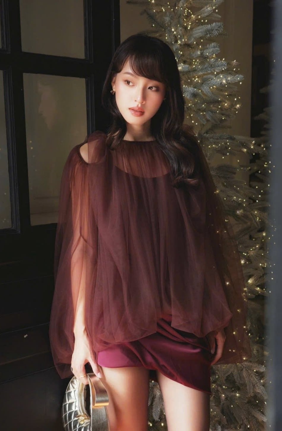 Váy đỏ mận ngắn lưới khoác ngoài MUST HAVE