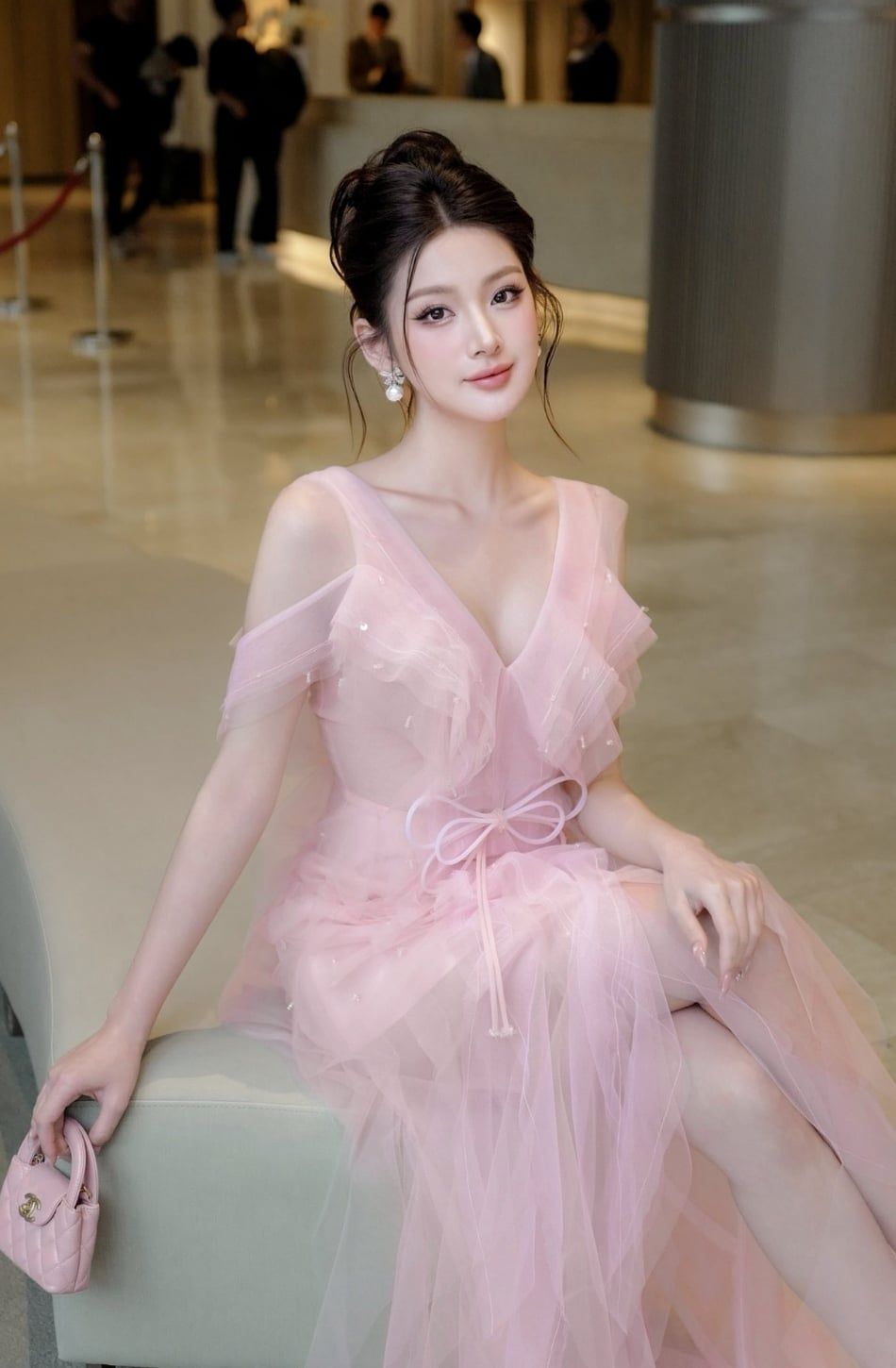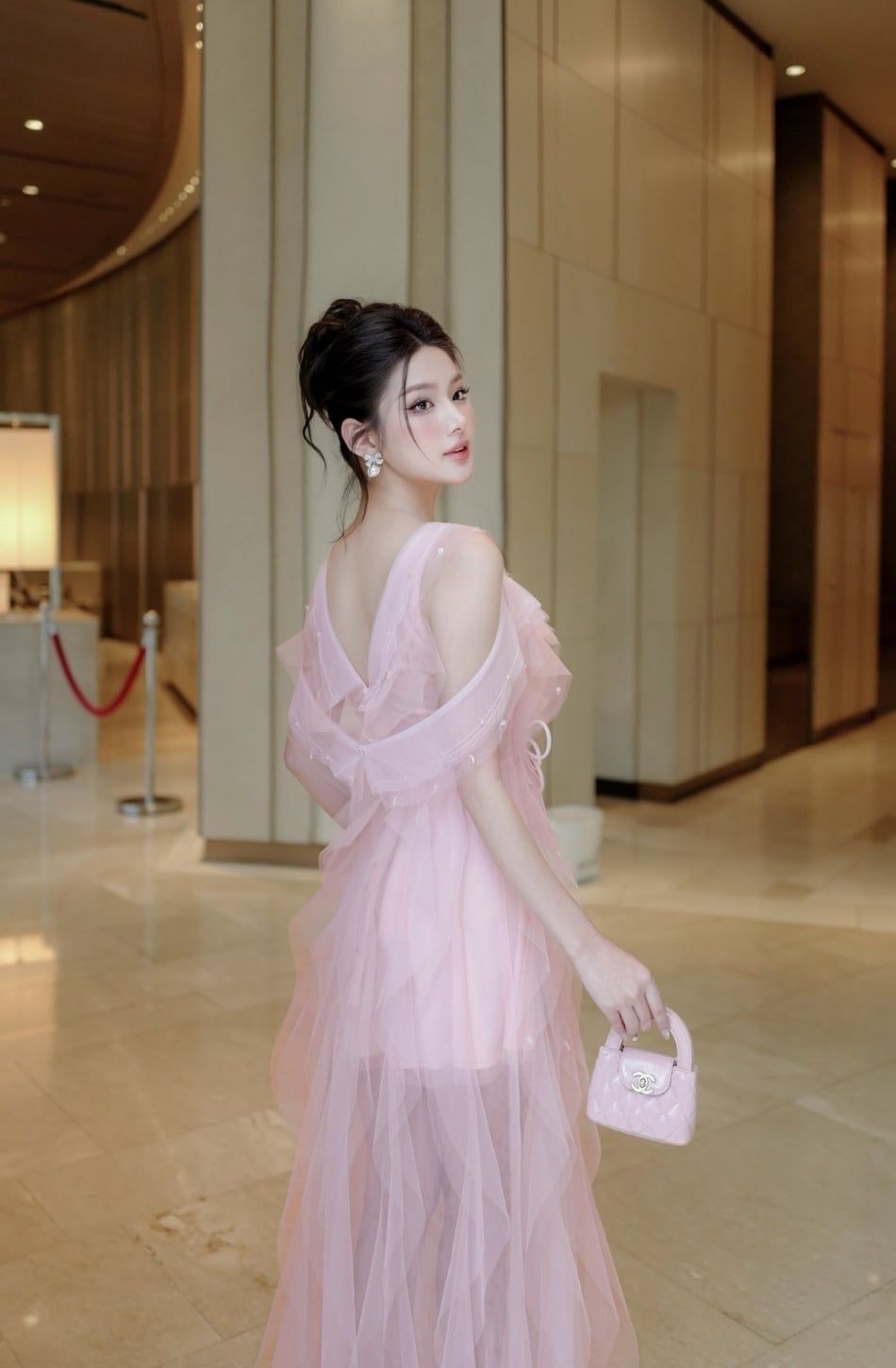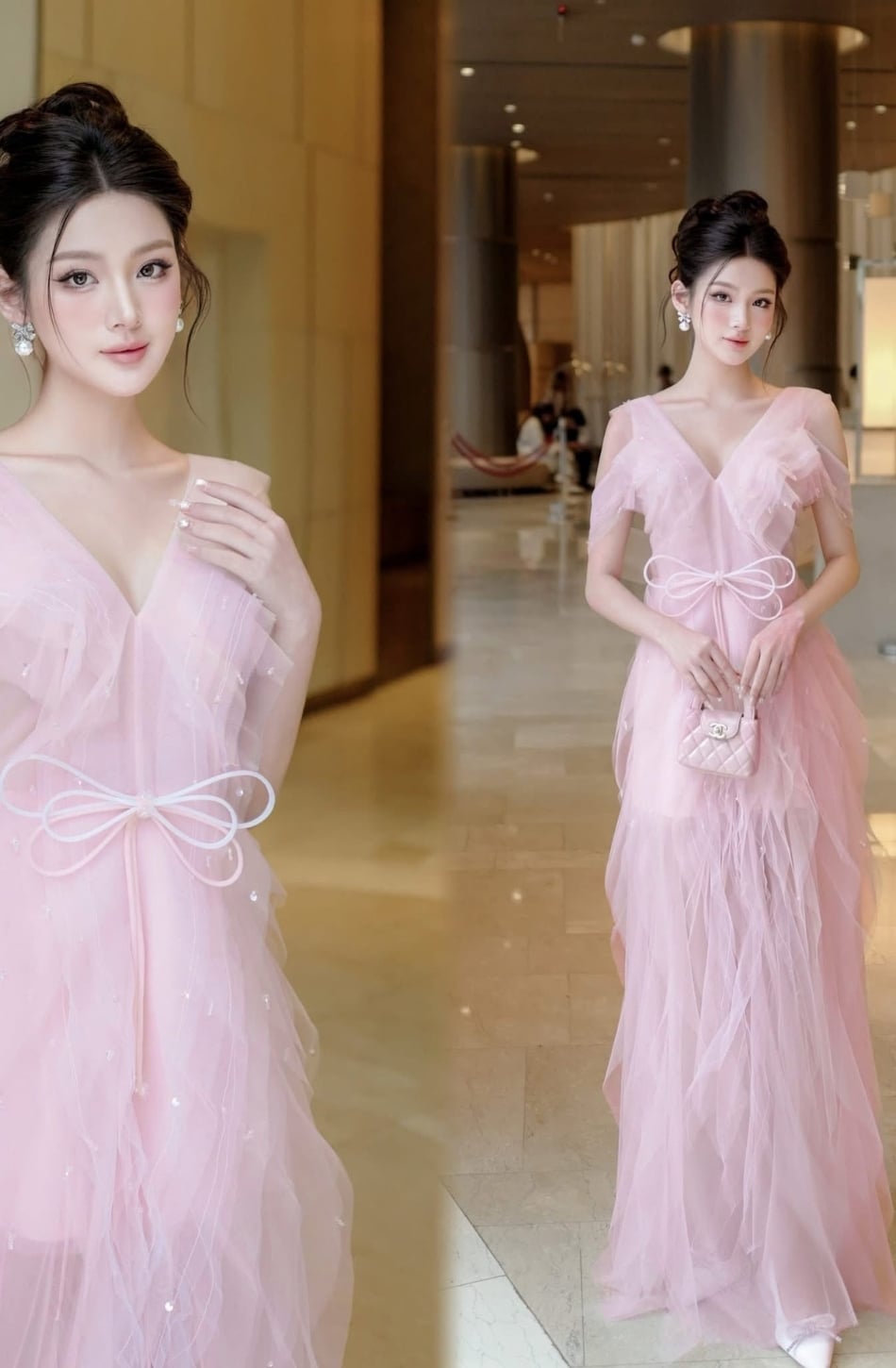 Váy hồng dài vổ chữ V XYBYMY XY - CÓ 2C NHA