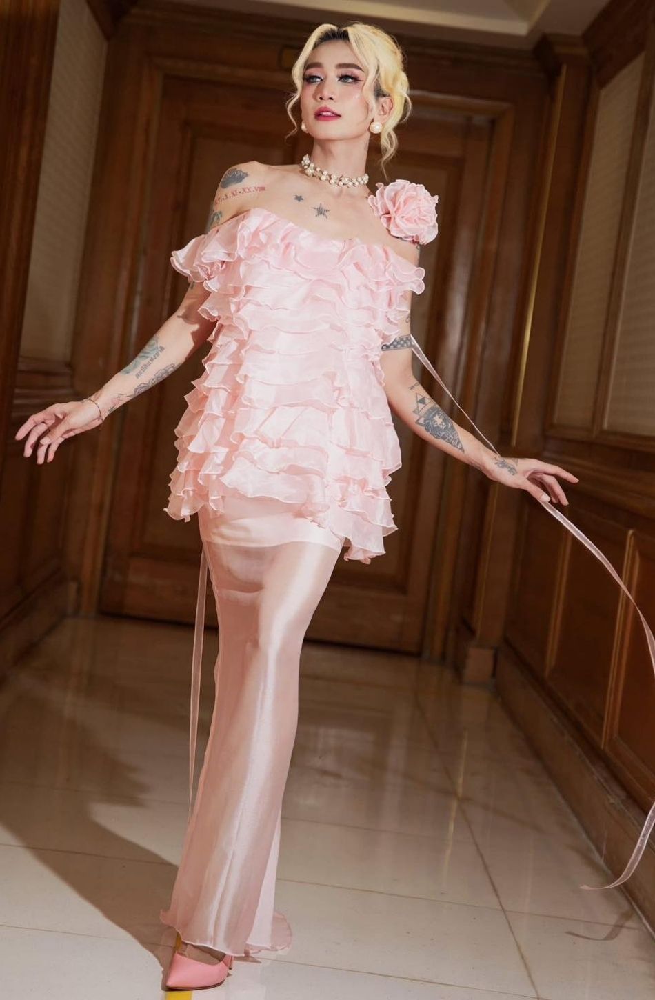 Váy hồng tầng tà trong suốt MOULINROSE.STU