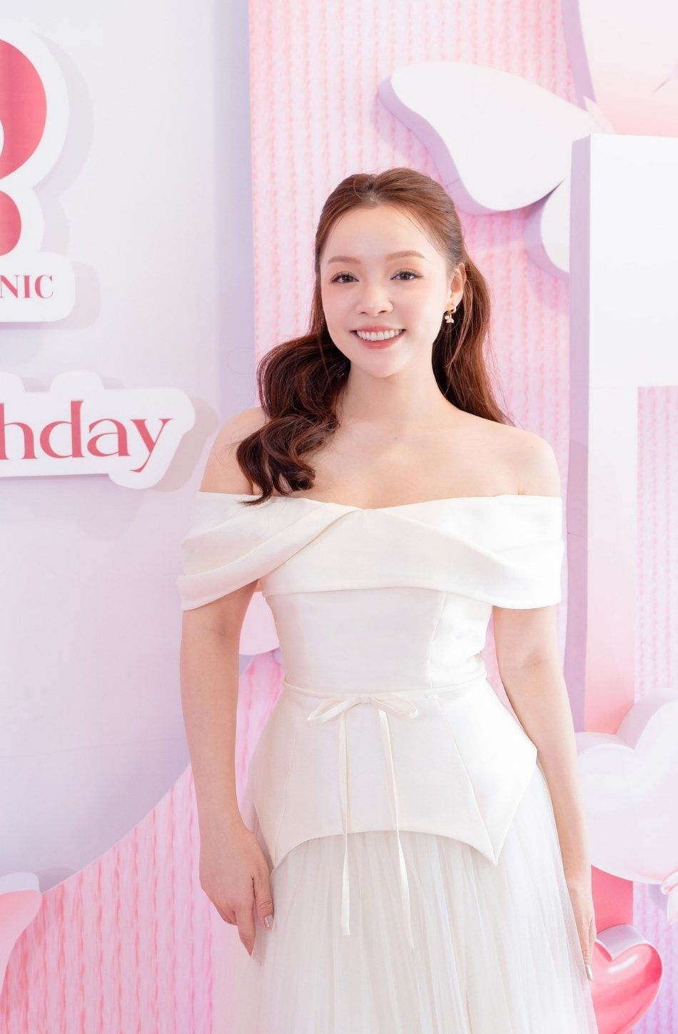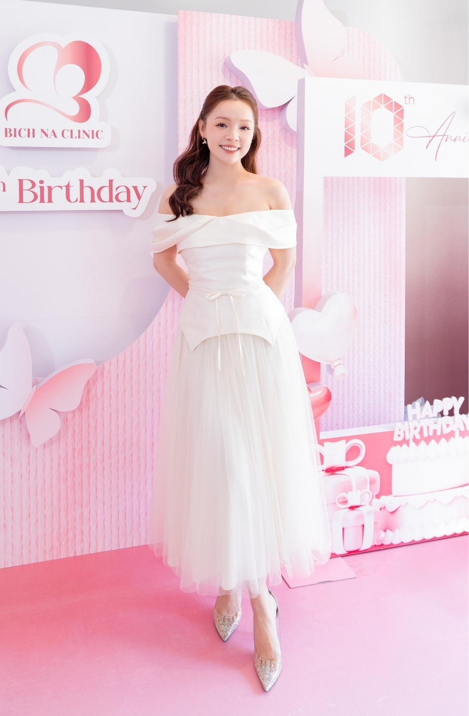 Váy kem bẹt vai kết hợp chân váy ren dài DENIO