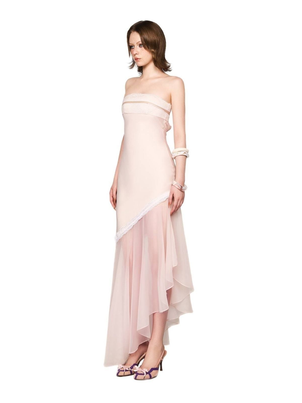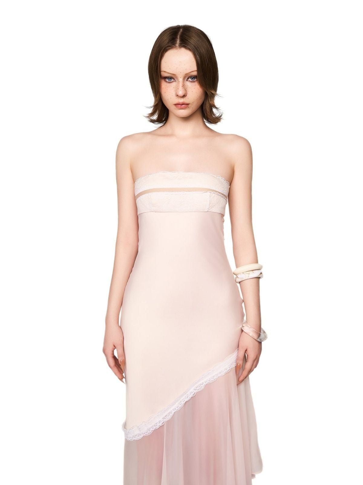 Váy kem cúp ngực tà chéo 1 bên lưới L SEOUL