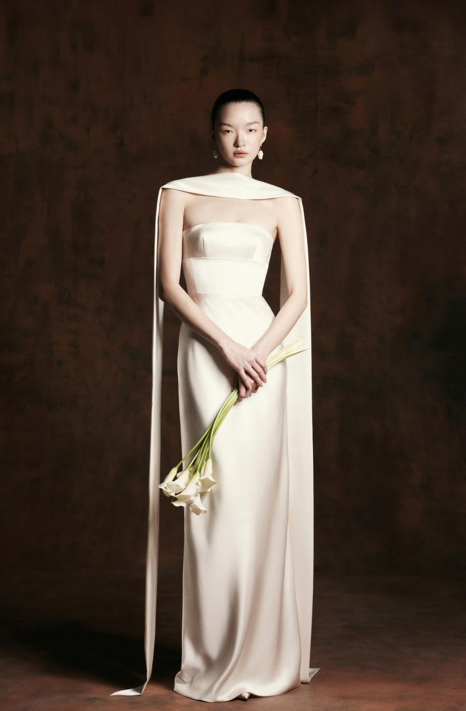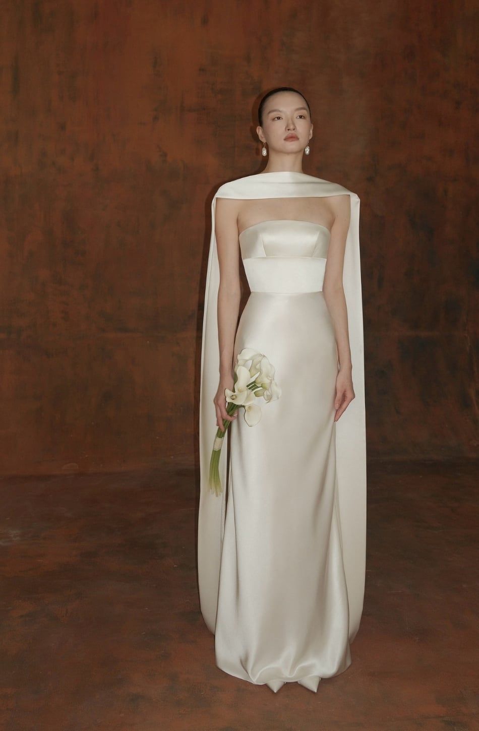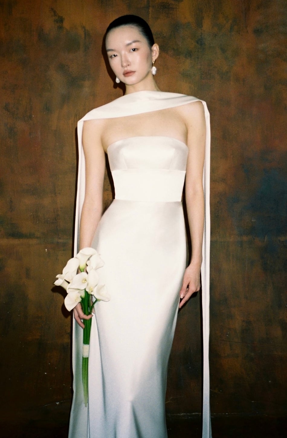 Váy kem lụa dài kết hợp choàng cổ HUONG BOUTIQUE