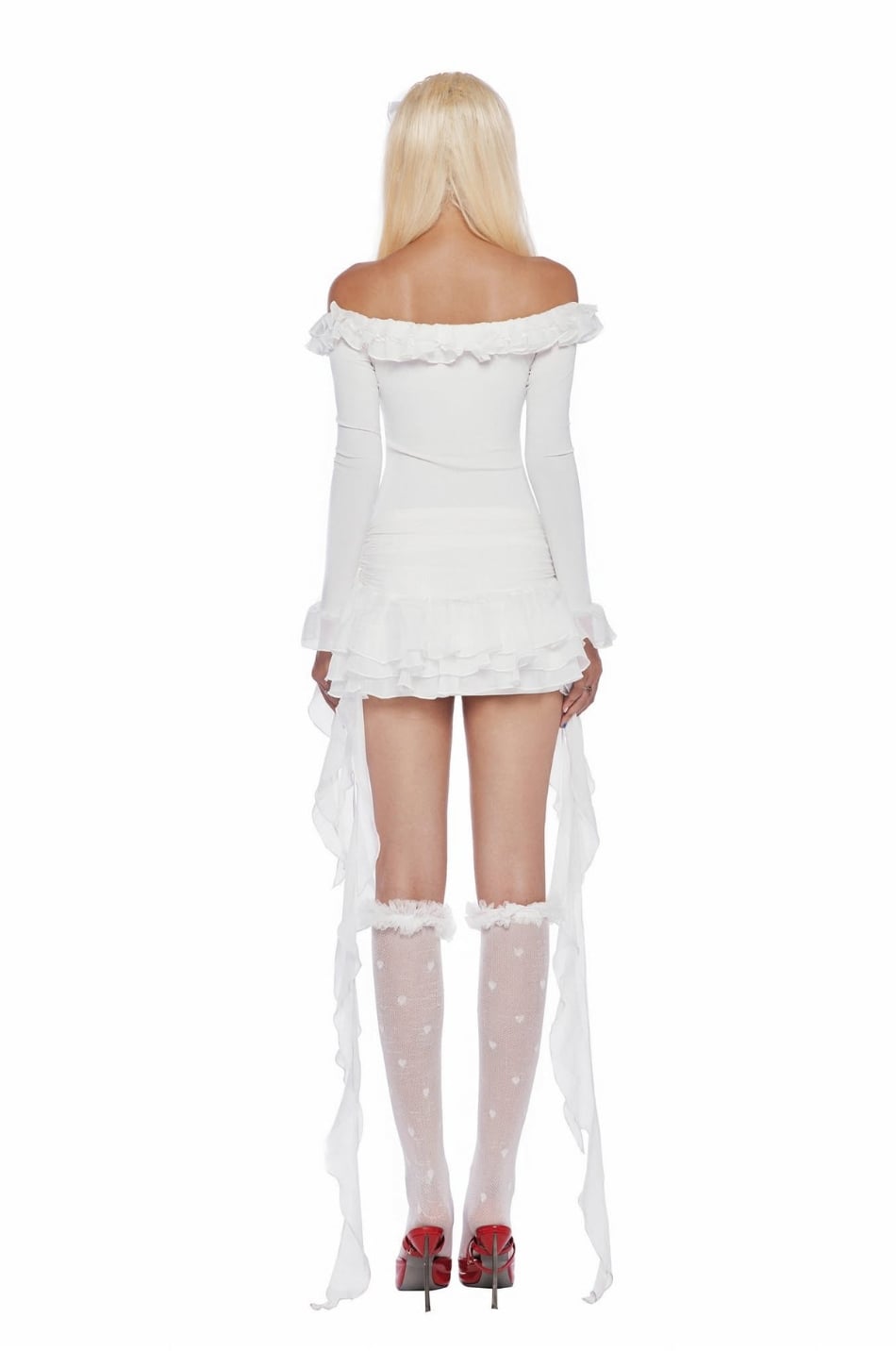 Váy lseoul trắng bẹt vai tua rua LSEOUL