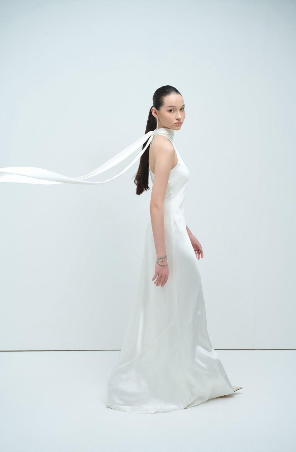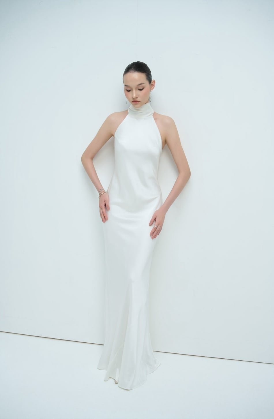 Váy lụa trắng cổ yếm bự SOCIAL COMMITMENT