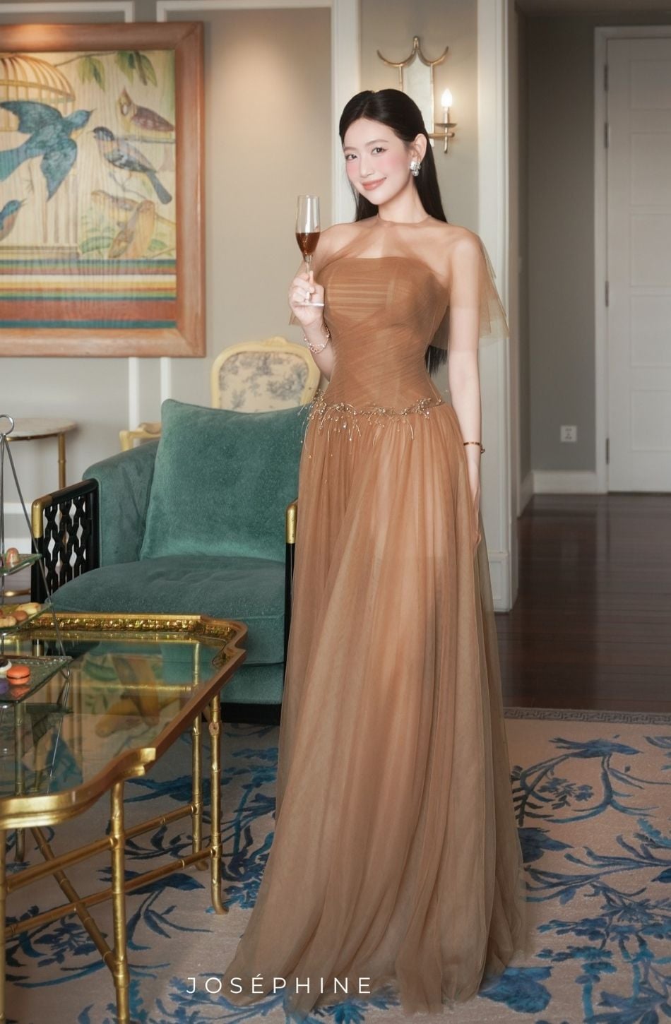 Váy nâu dài cúp ngực kèm cap trên cổ JOSEPHINE