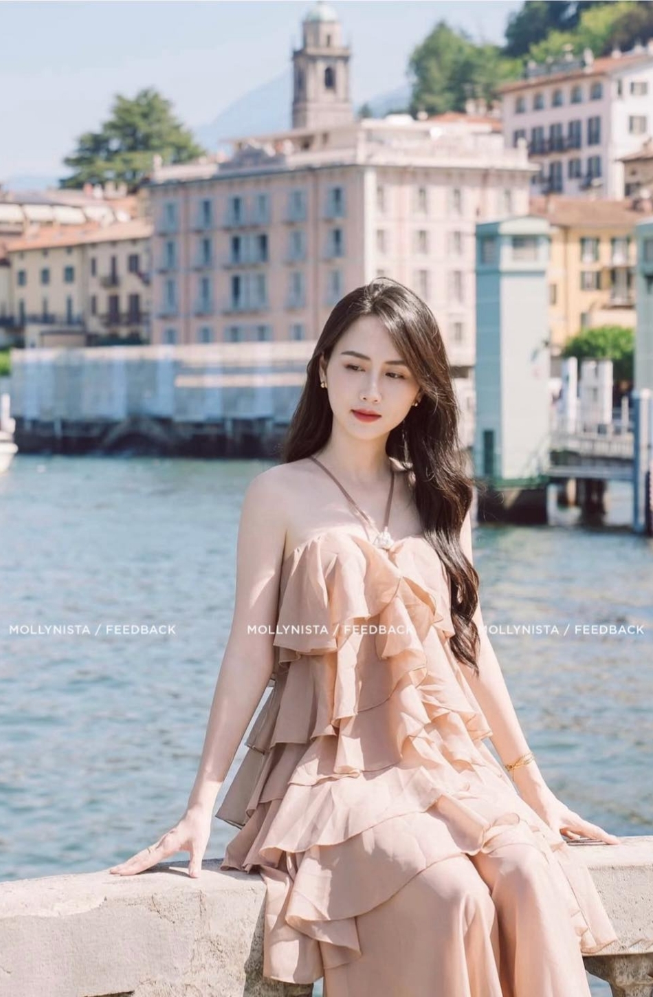 Váy nâu dây cột cổ tà tầng MOLLYNISTA