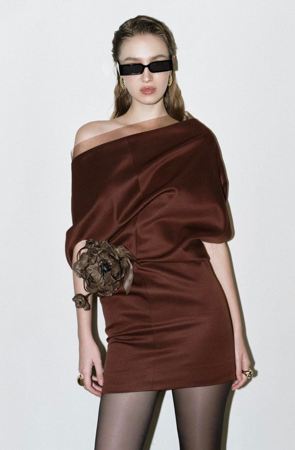 Váy nâu ngắn bẹt vai DANG HOANG