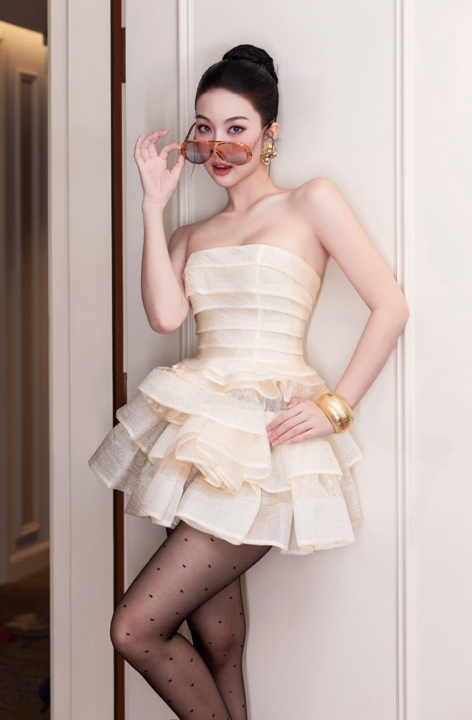 Váy ngắn tầng đính hoa hồng 3d kèm quần bảo hộ GLAMDOLL