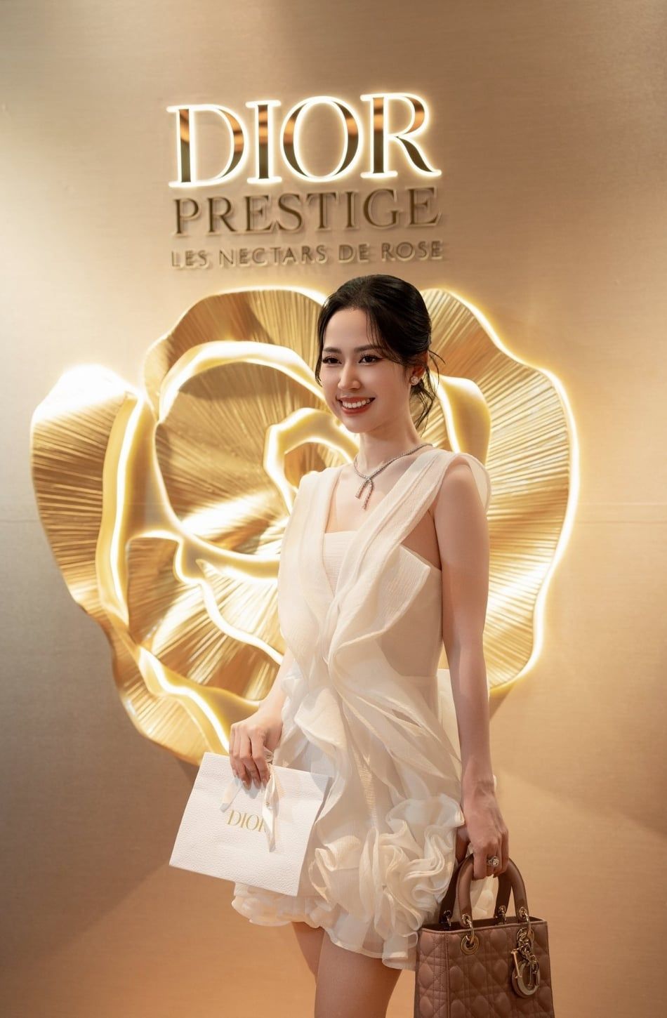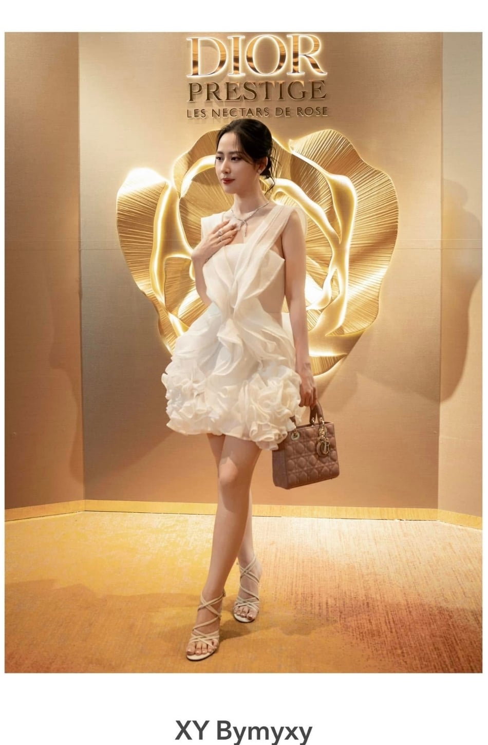 Váy ngắn trắng đính hoa hồng 2 bân tà XYBYMY XY