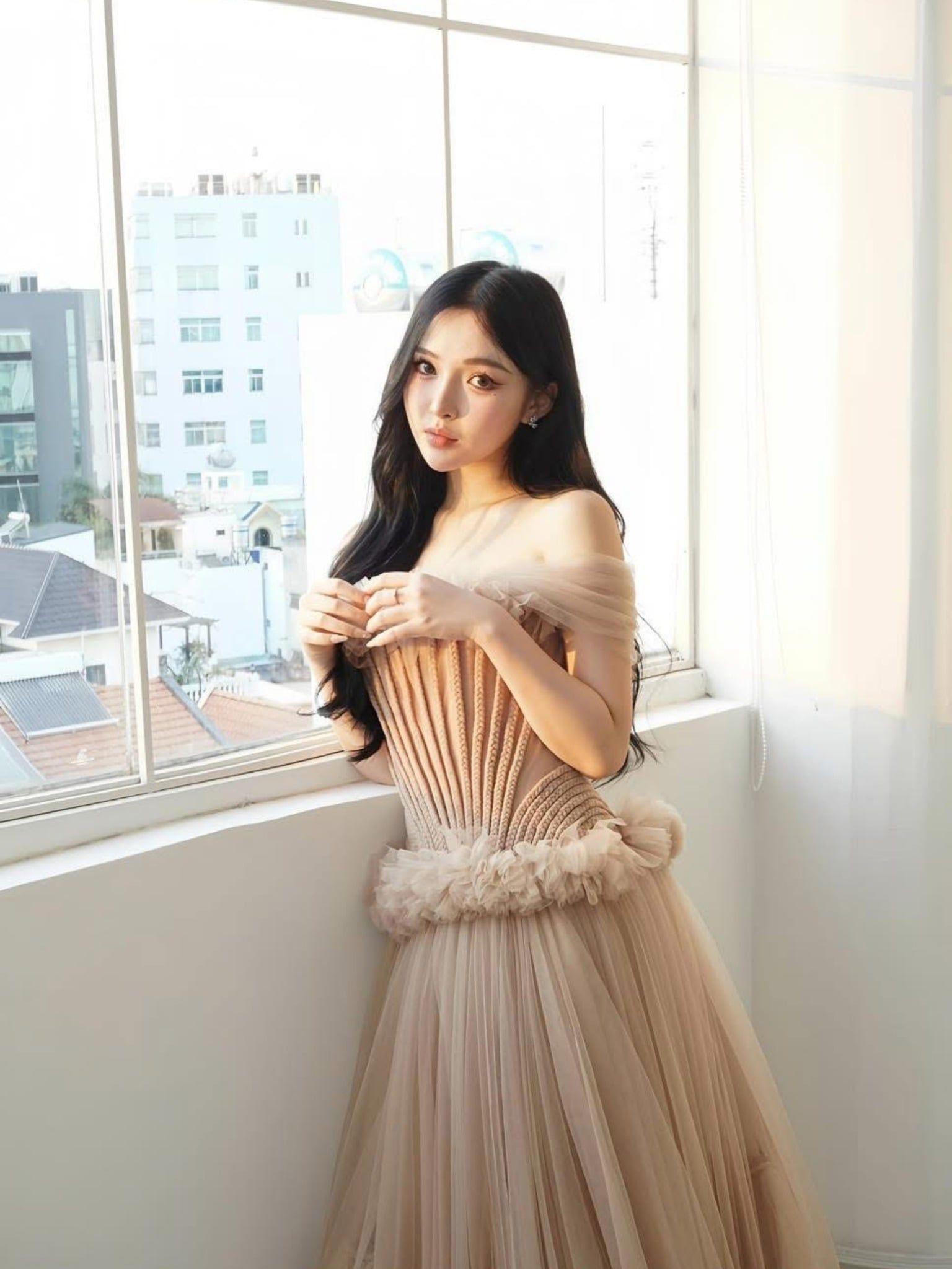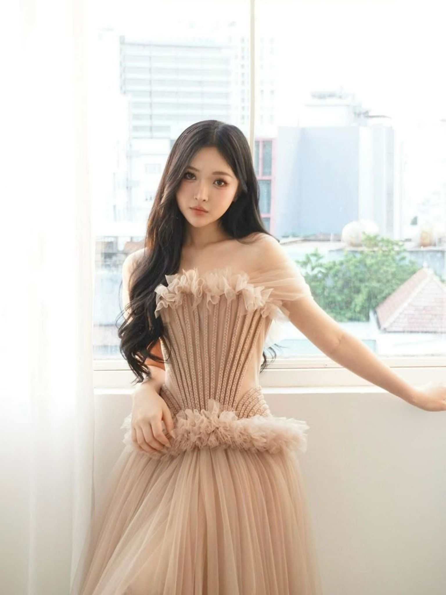 Váy nude cúp ngực corset phồng to LINH PHUNG