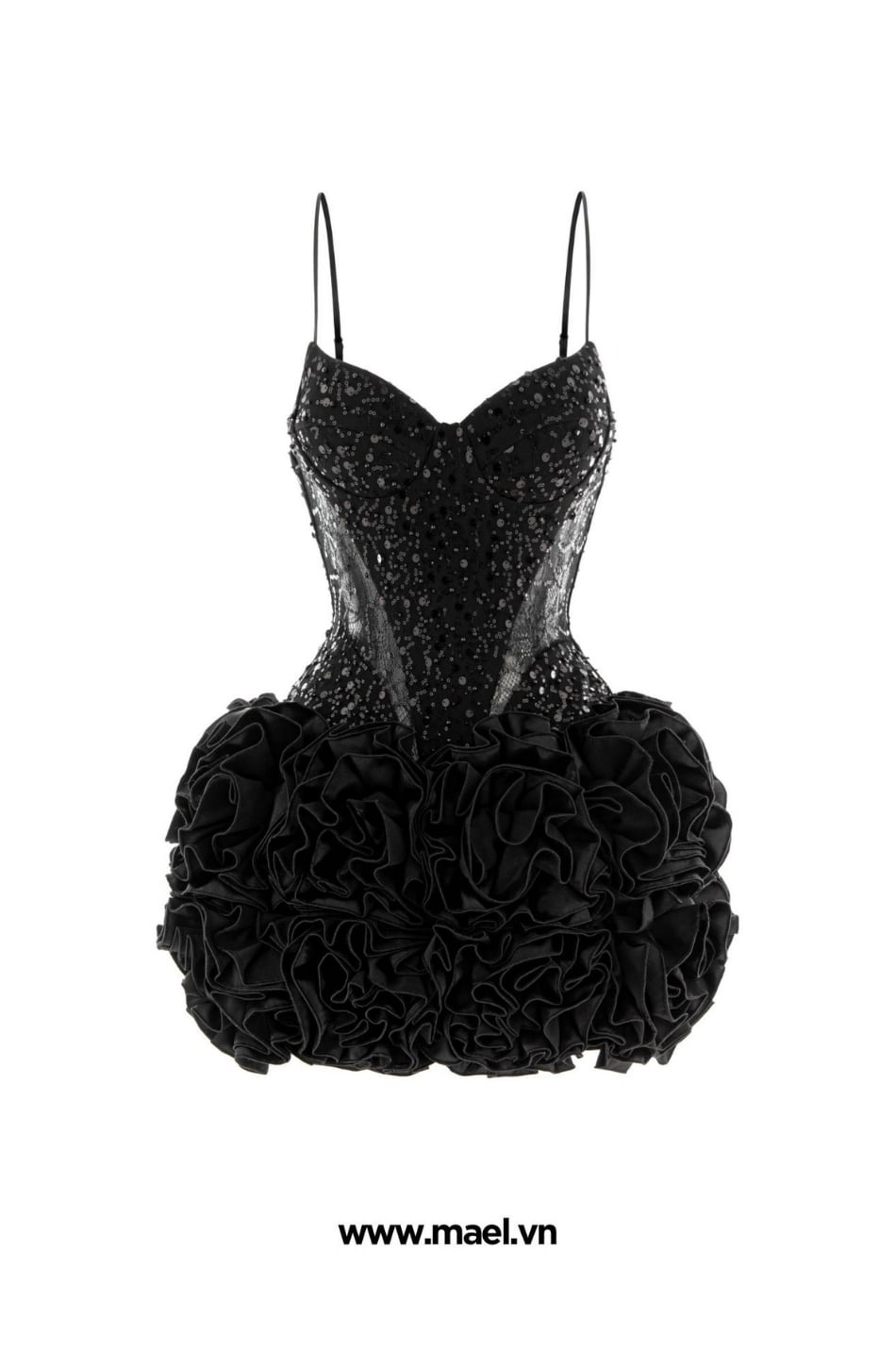 Váy RYLENE đen 2 dây tà bông MAEL FEMME