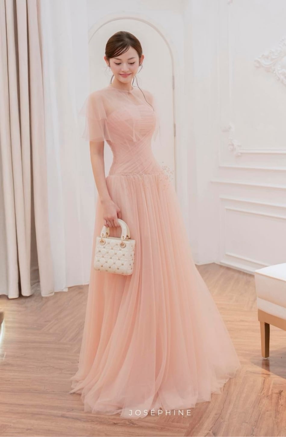 Váy SERENE hồng kèm choàng ngắn trên vai JOSEPHINE