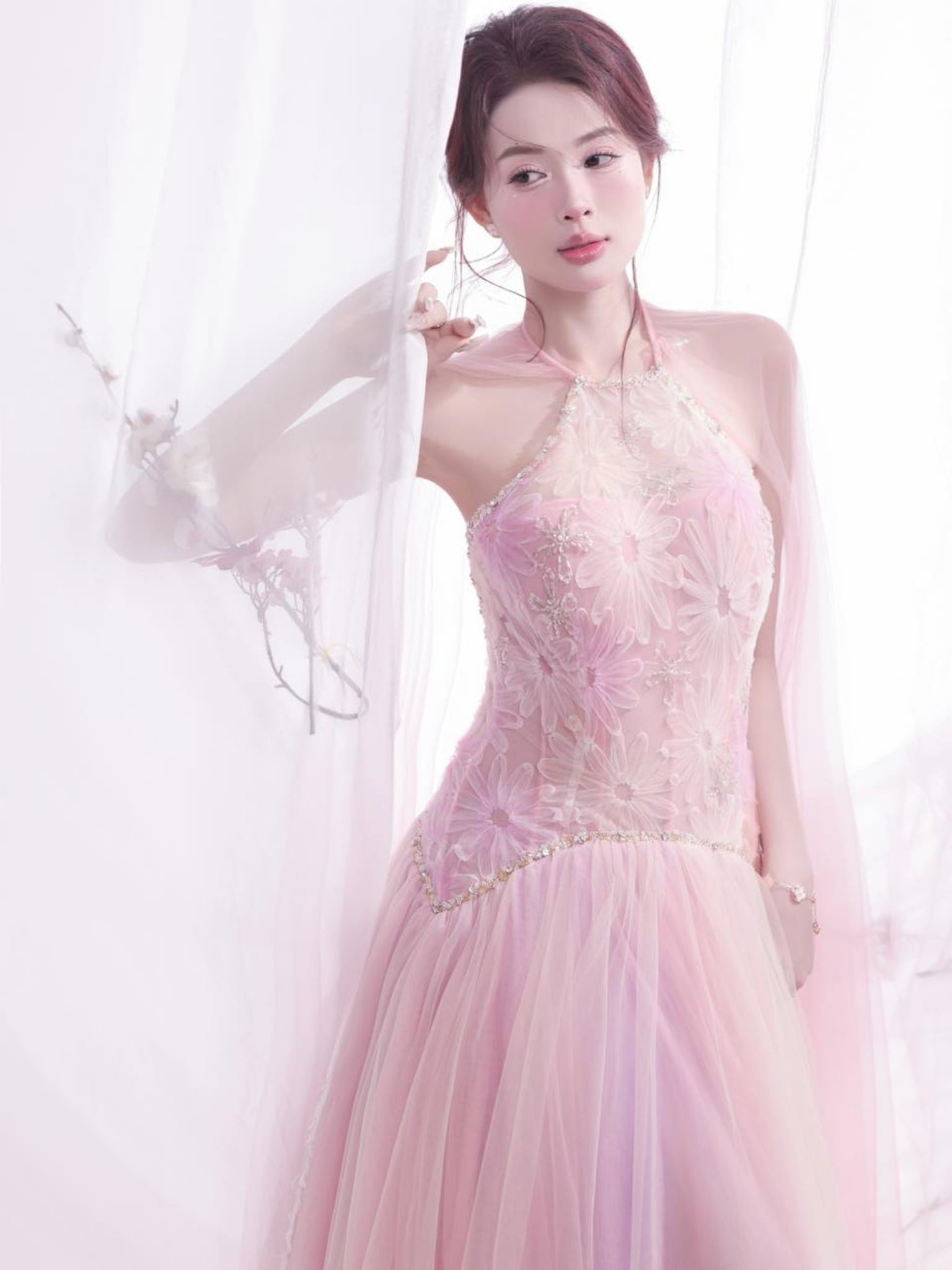 Váy tím dài tà lưới phồng LINH PHUNG