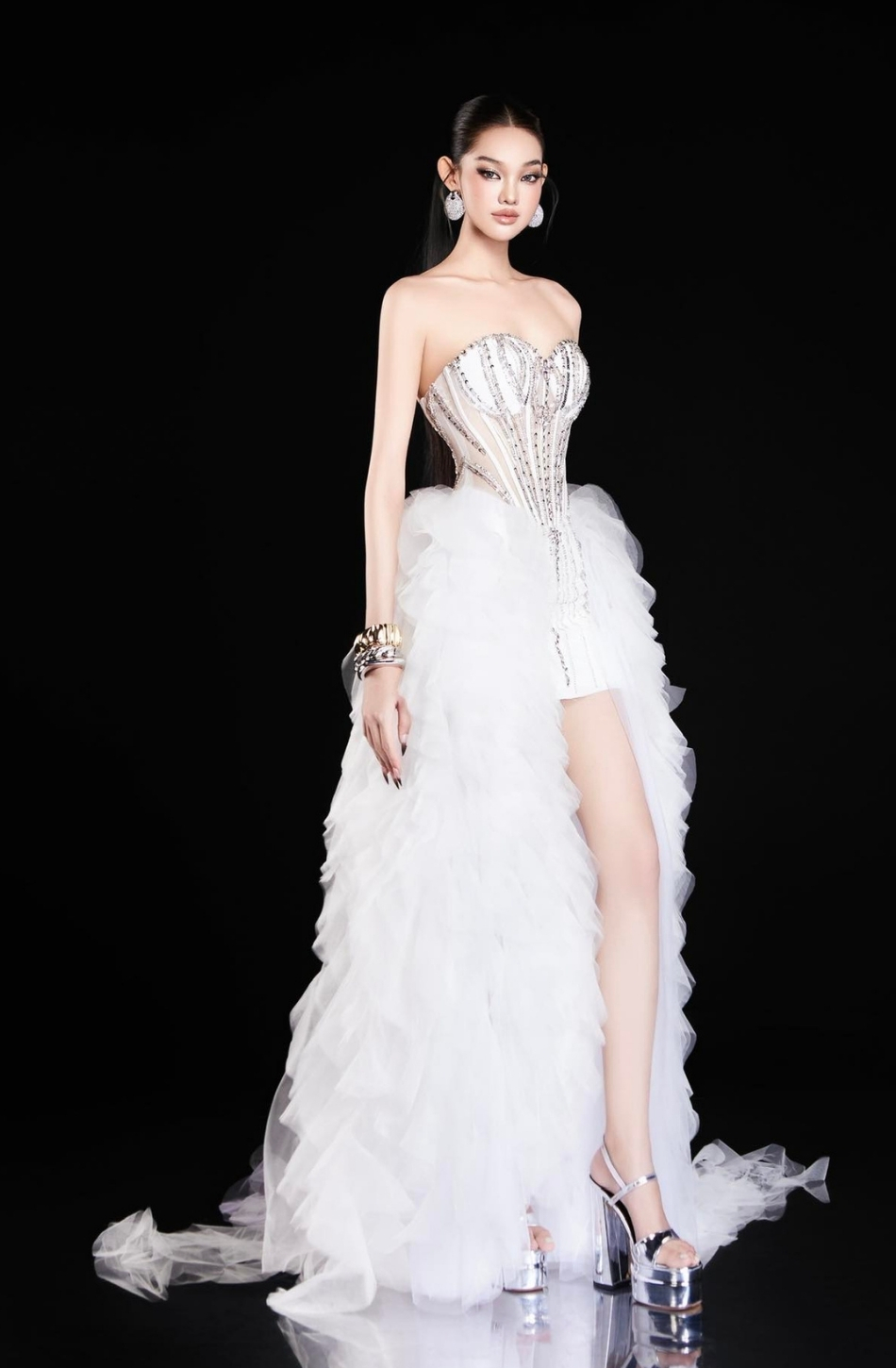 Váy trắng cúp ngực đính đá tà dài bồng BANDAGE DRESS