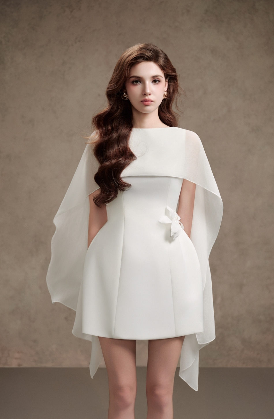 Váy trắng ngắn kèm khăn choàng DELICATE