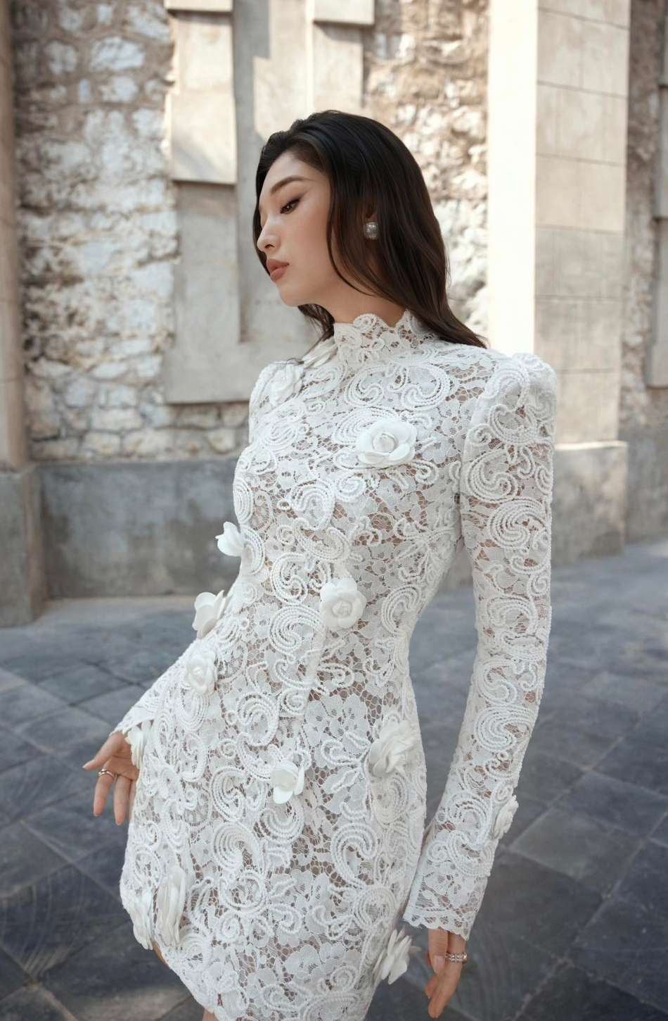 Váy trắng Petal Beading hoạ tiết hoa ren KEIRA TONG