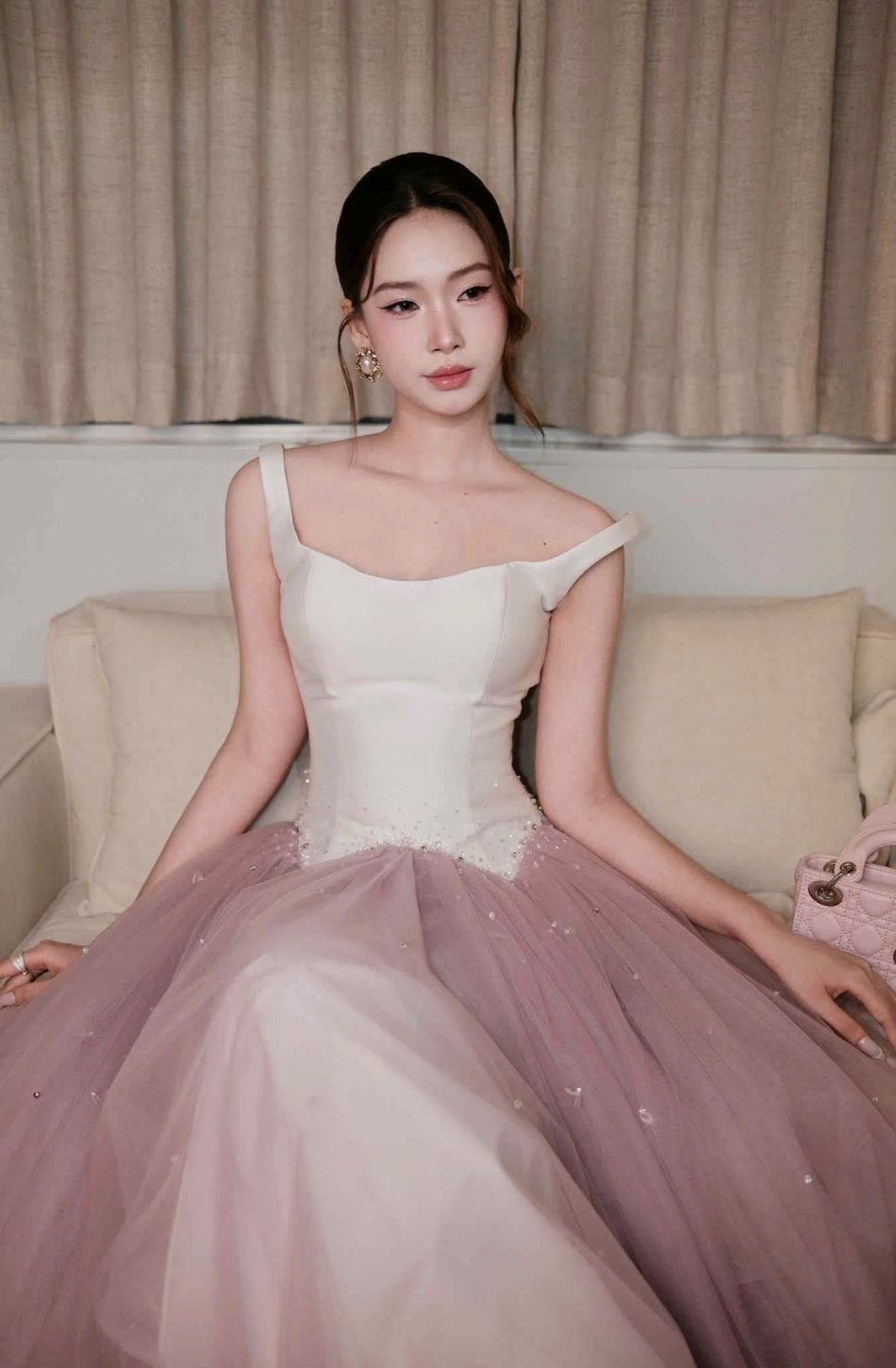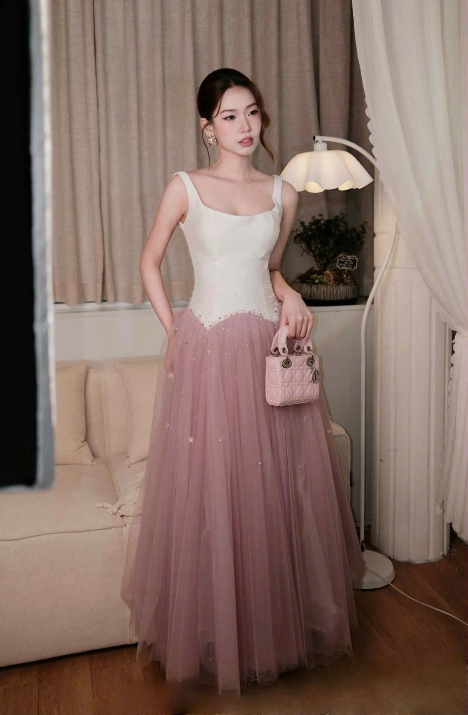 Váy trắng tà hồng Violette BẢN NGẮN JOSEPHINE